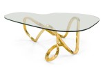 "Porto" Contemporary Modern Organic Loop Design Polished Bronze and Glass Coffee Tables by Newel Mod