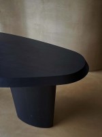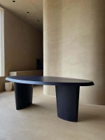 Contemporary oval MDF dining table with an elliptical top supported by two supporting legs (KAR STUDIO)
