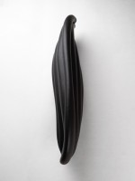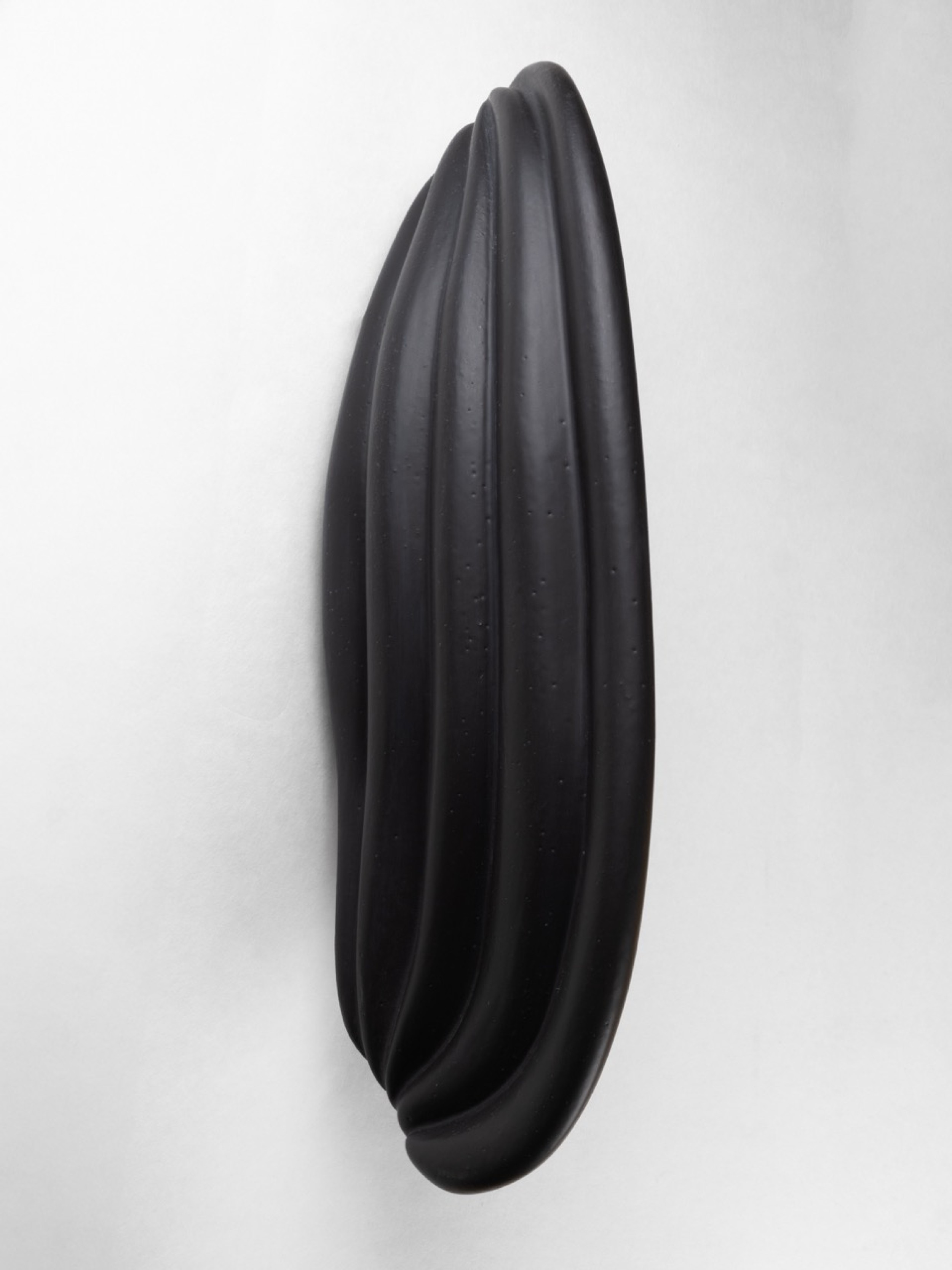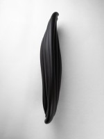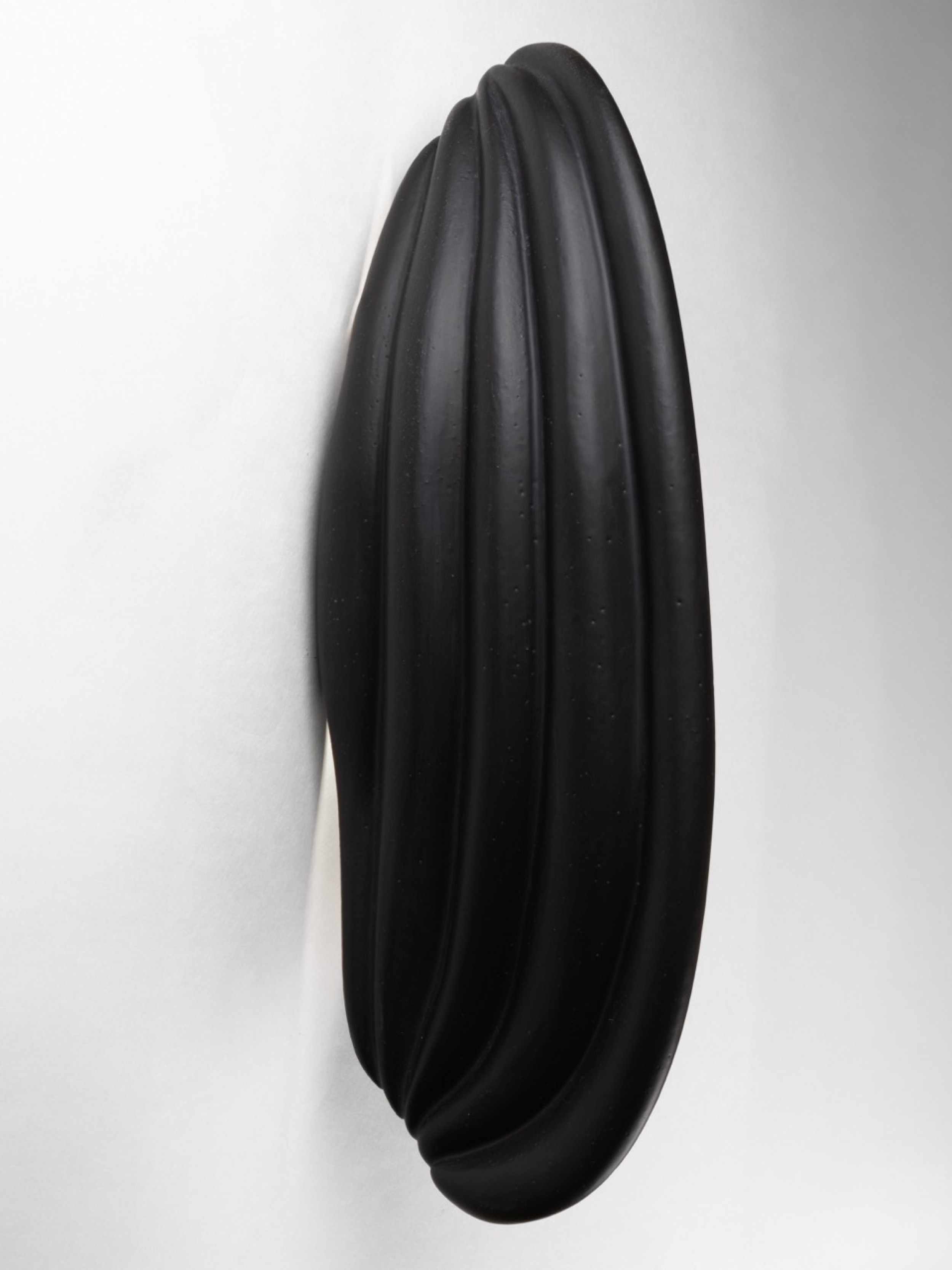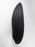 Contemporary ceramic wall sconce featuring a black finish with a flowing design that resembles draped fabric bearing a small slithered opening for light illumination (ELSA FOULON)
