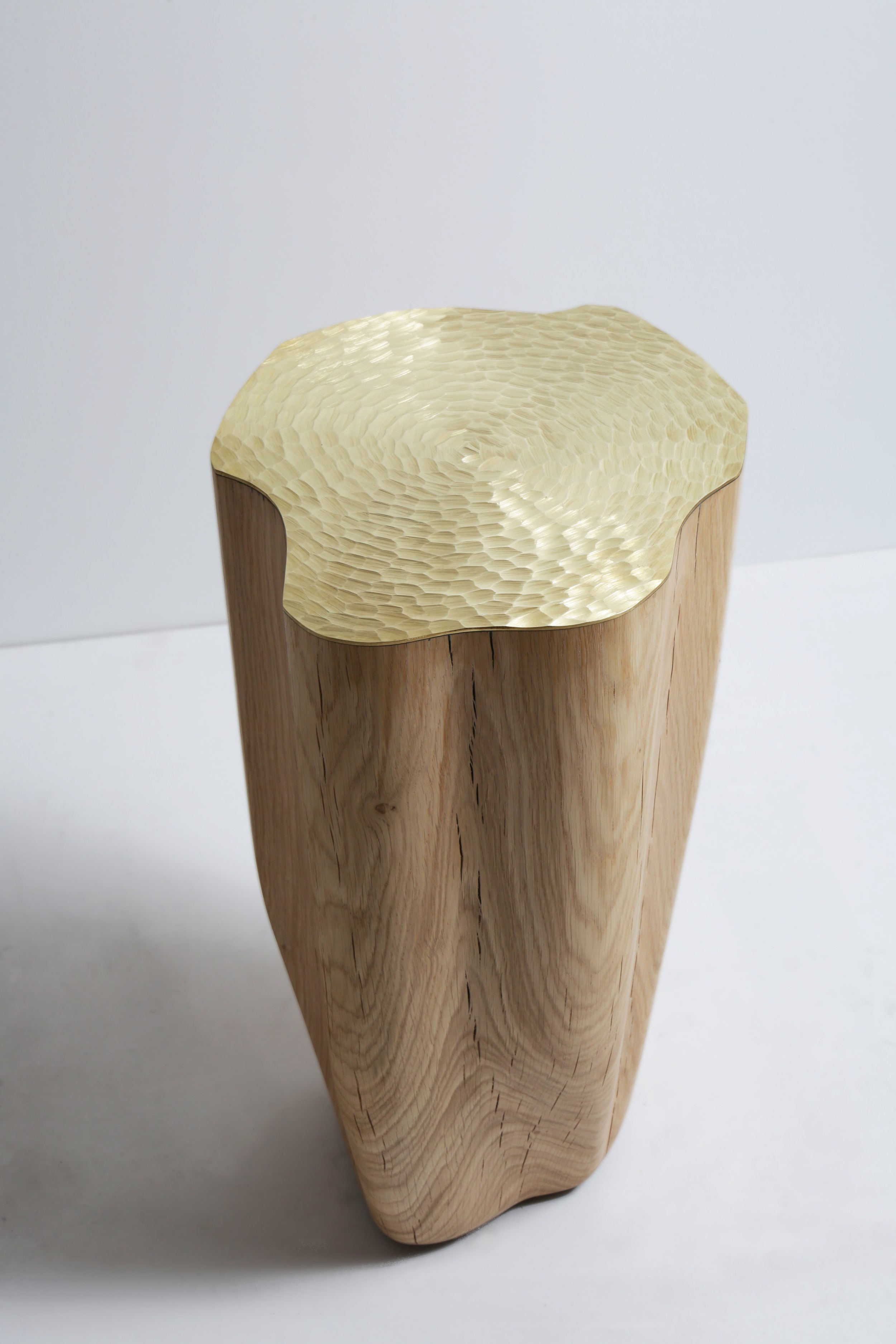 Contemporary unique duramen with hand sculpted brass top on a solid oak (JULES LOBGEOIS)
