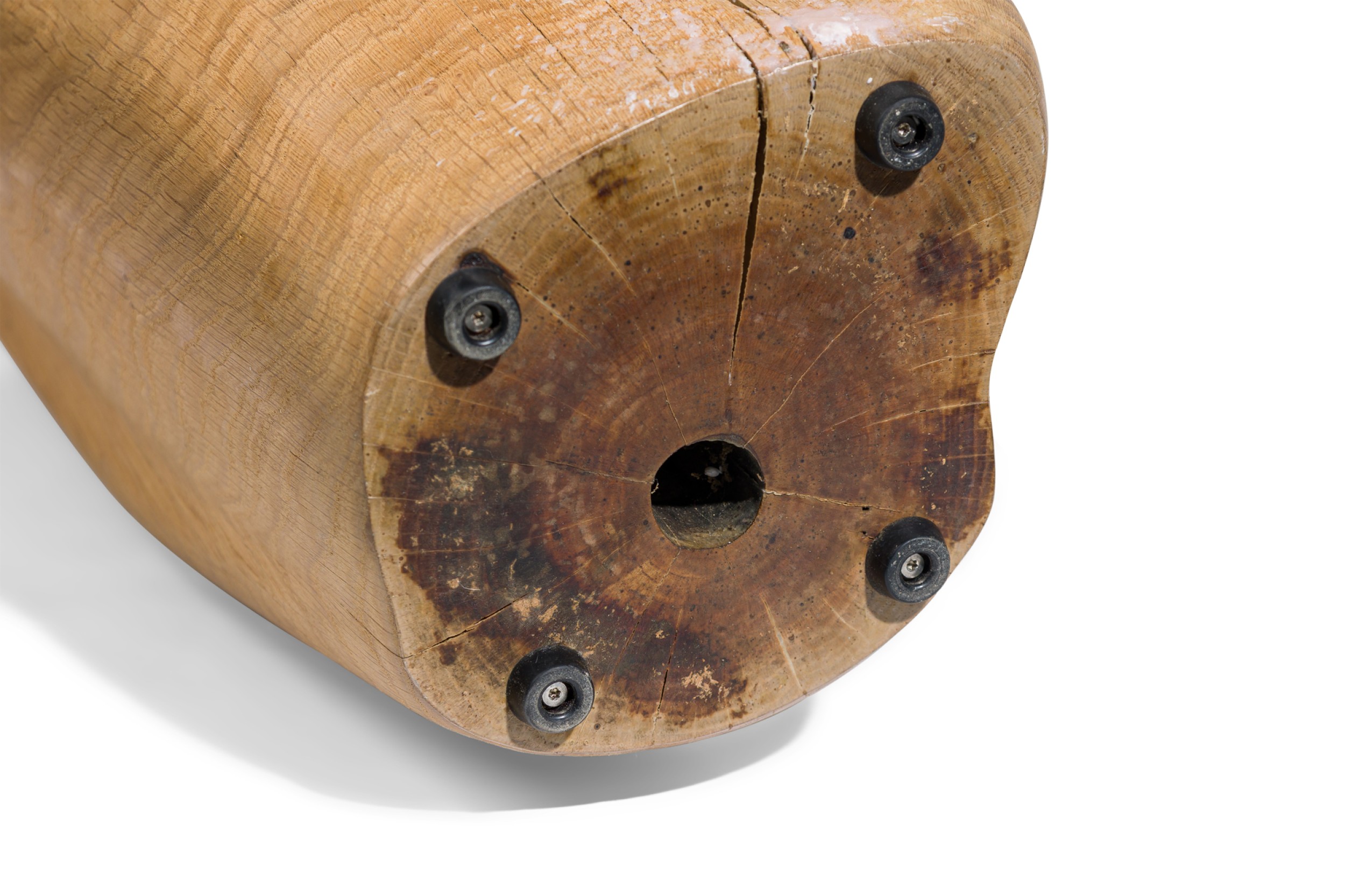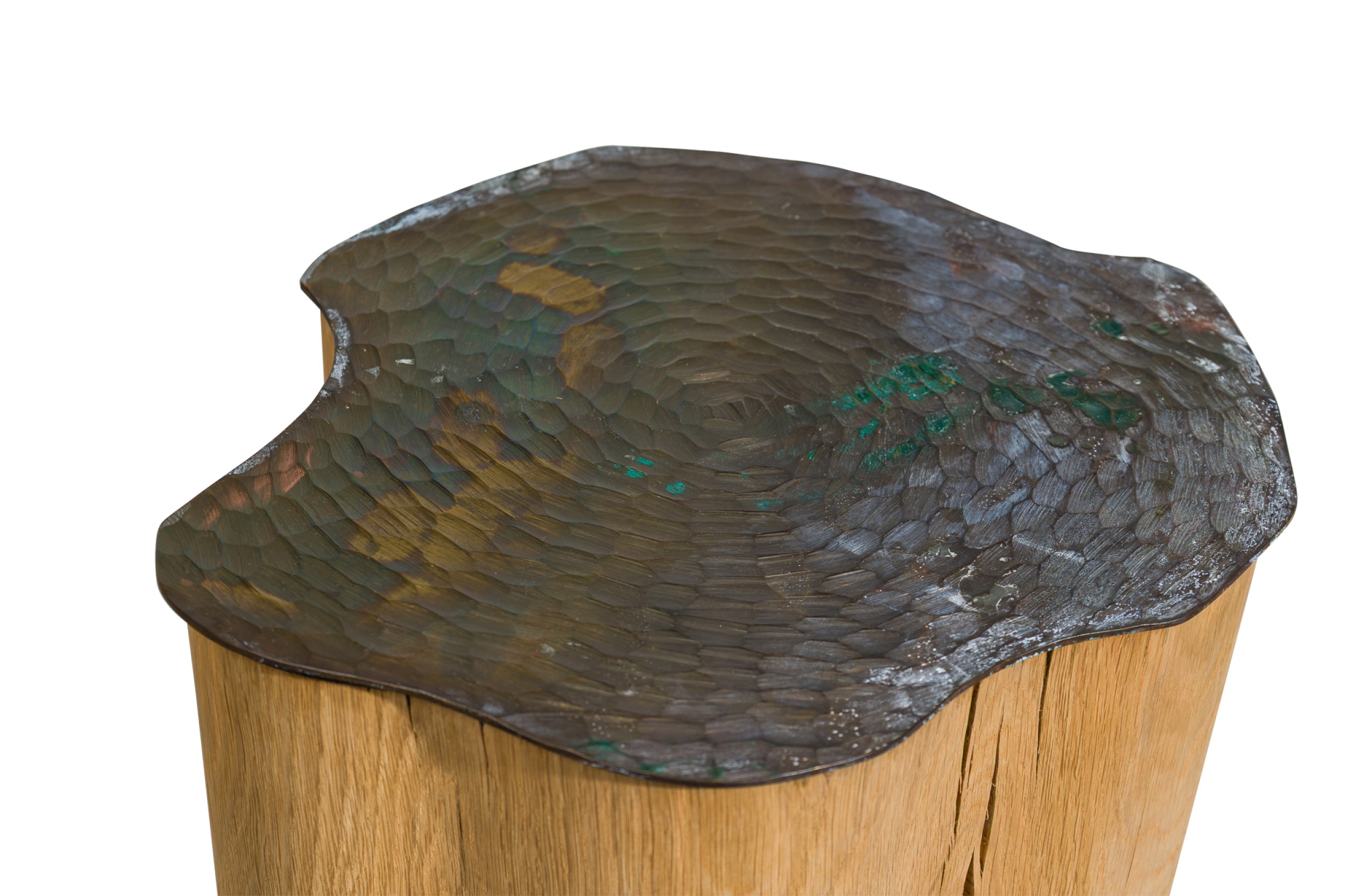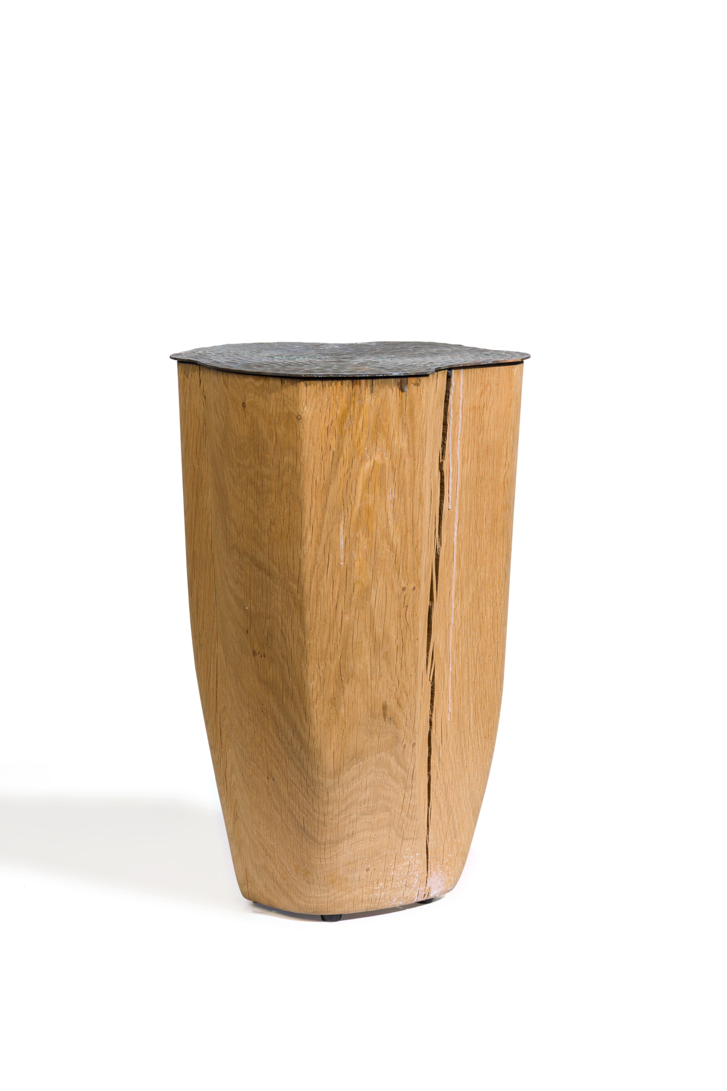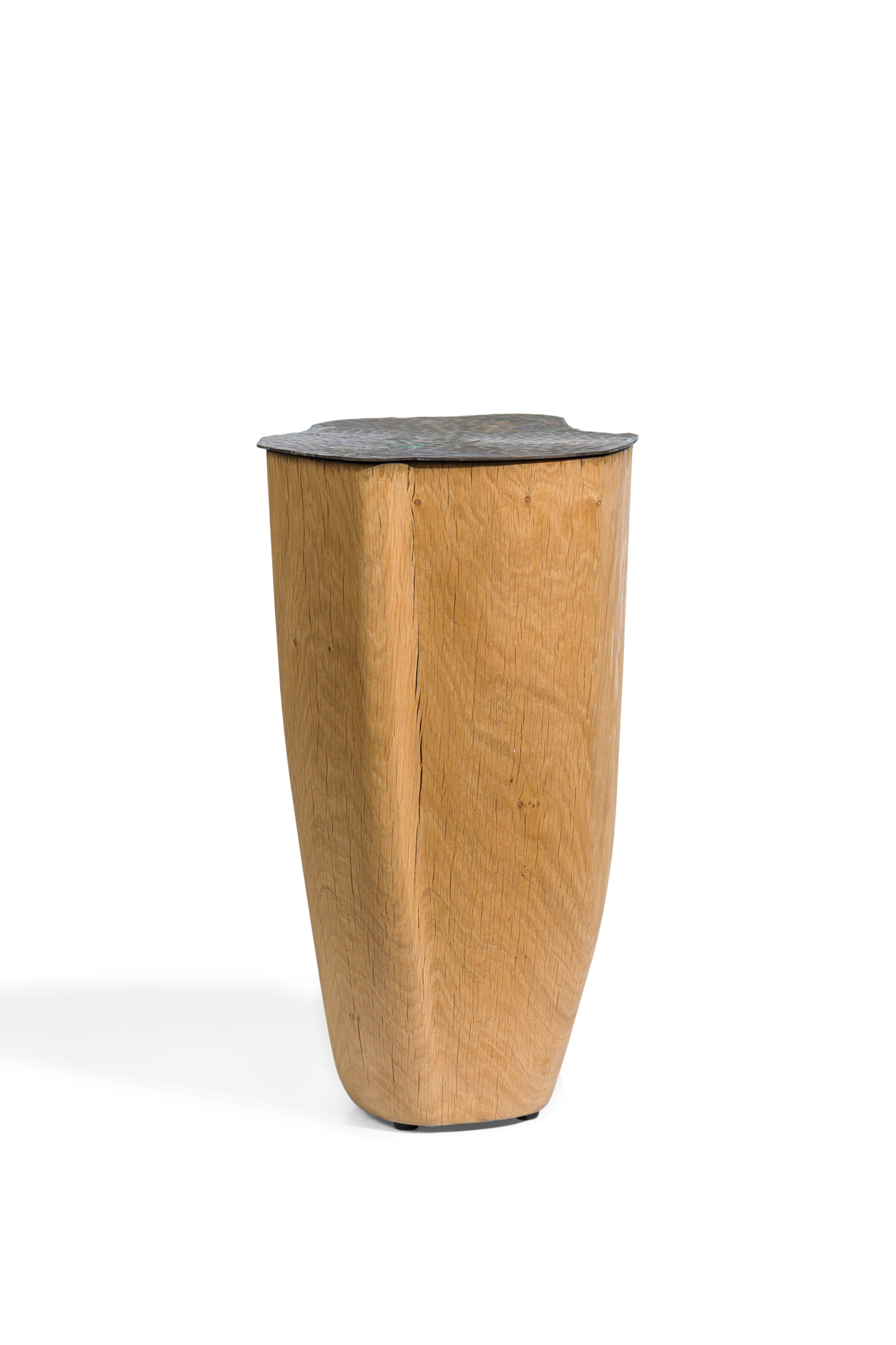 Contemporary unique tall duramen with hand sculpted brass top on a solid oak (JULES LOBGEOIS)