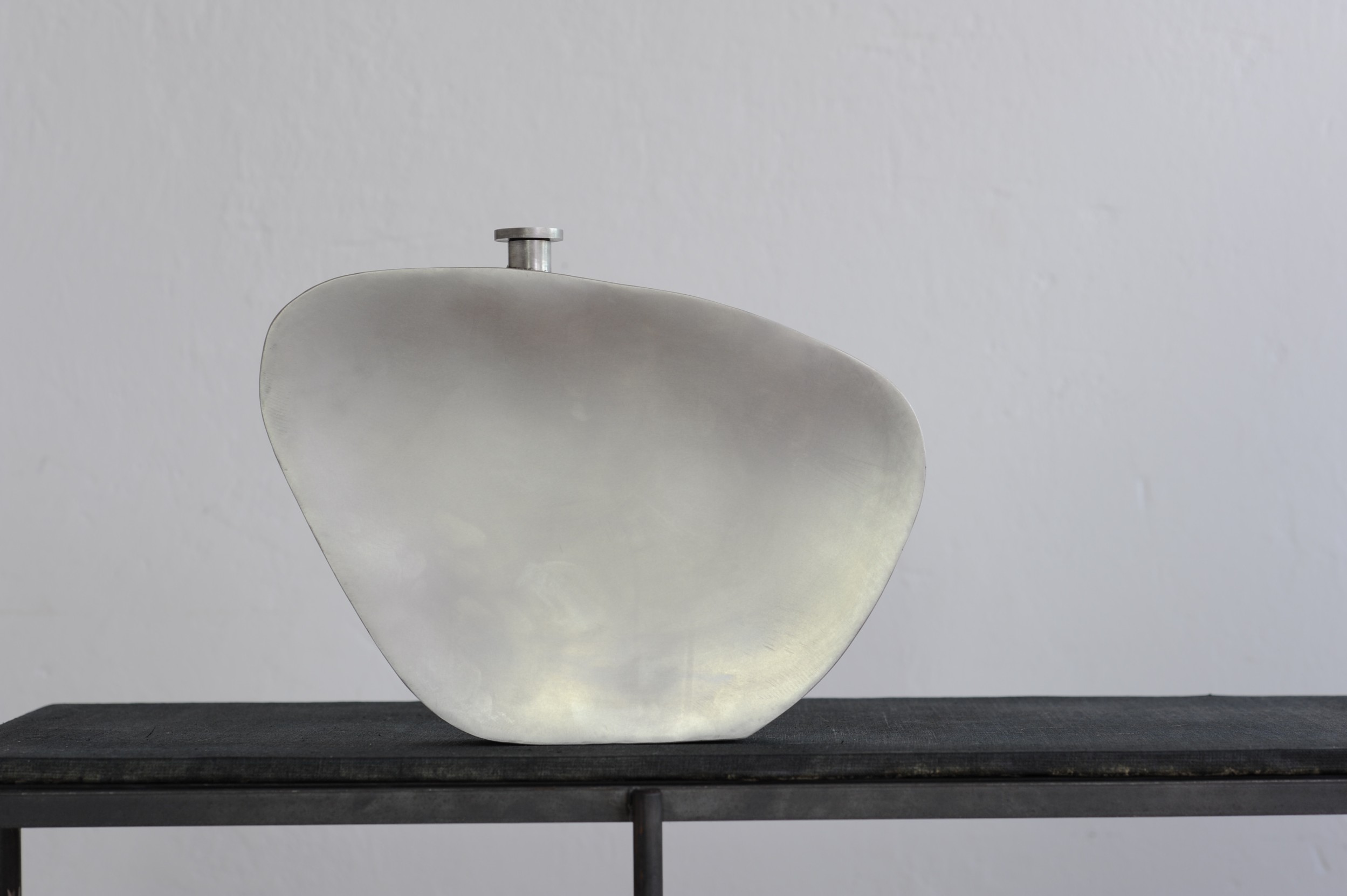 Contemporary bottle with a hand sculpted steel body in a narrow organic shape with a slightly off-centered neck (LUKASZ FRIEDRICH).