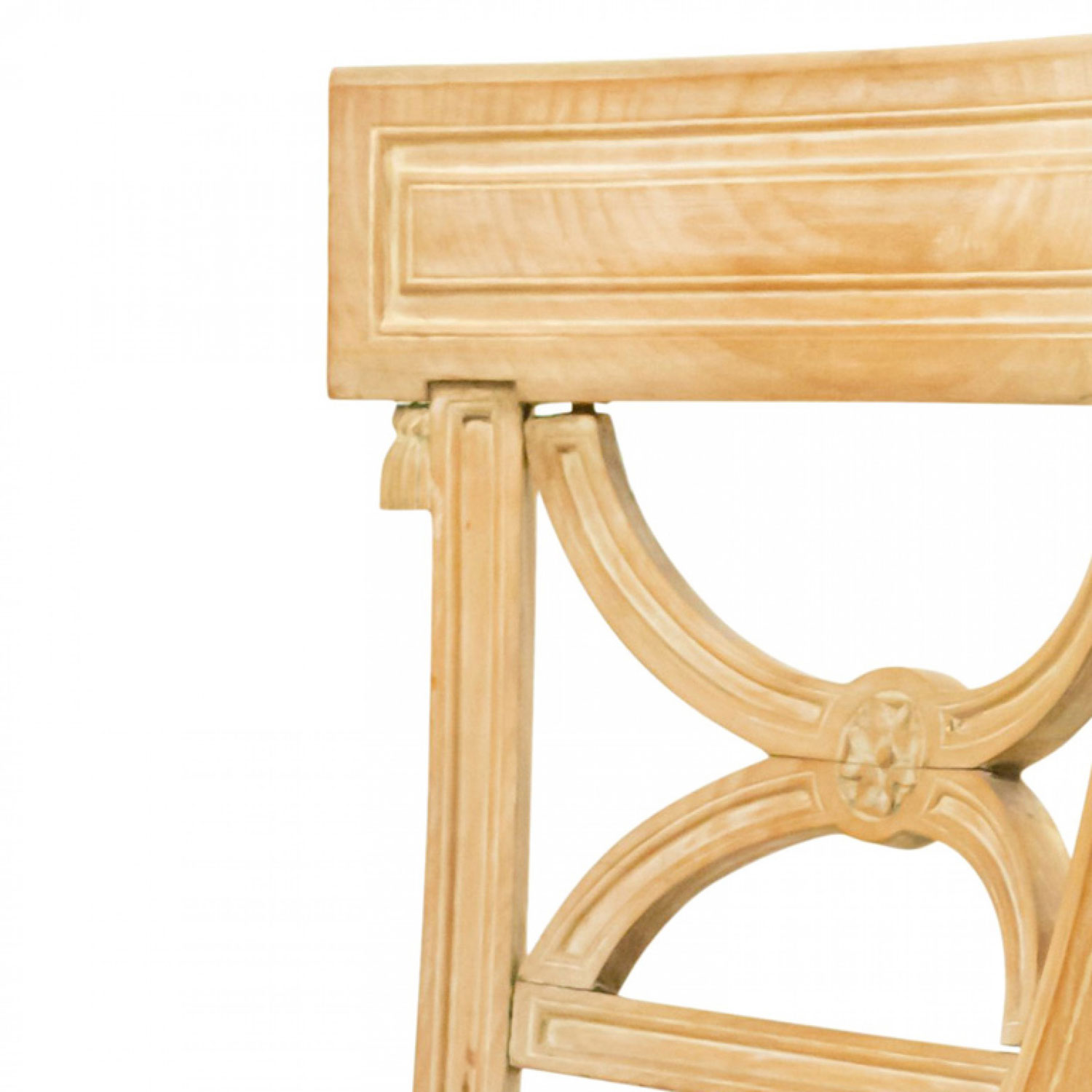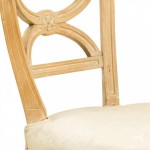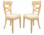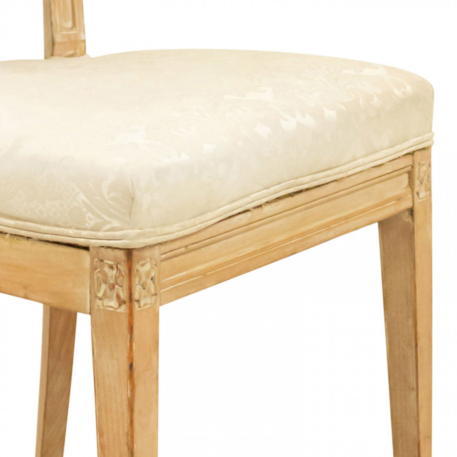 PAIR of Continental Neoclassic style stripped beech side chairs with in-curved crest rail above X form back & white damask silk upholstered seat. (possibly Italian, 20th Cent)