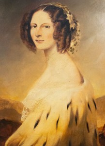 Copy of a classical portrait of the Grand Duchess of Russia, Elena Pavlovna, in her Ermine cape with the steppes in background.