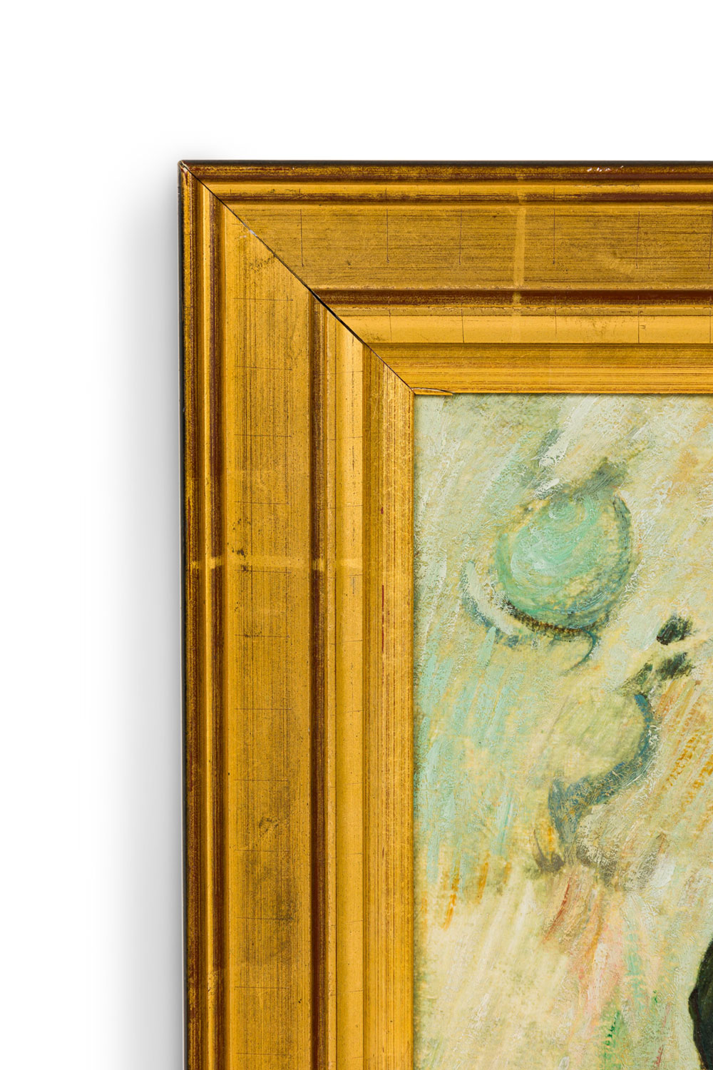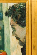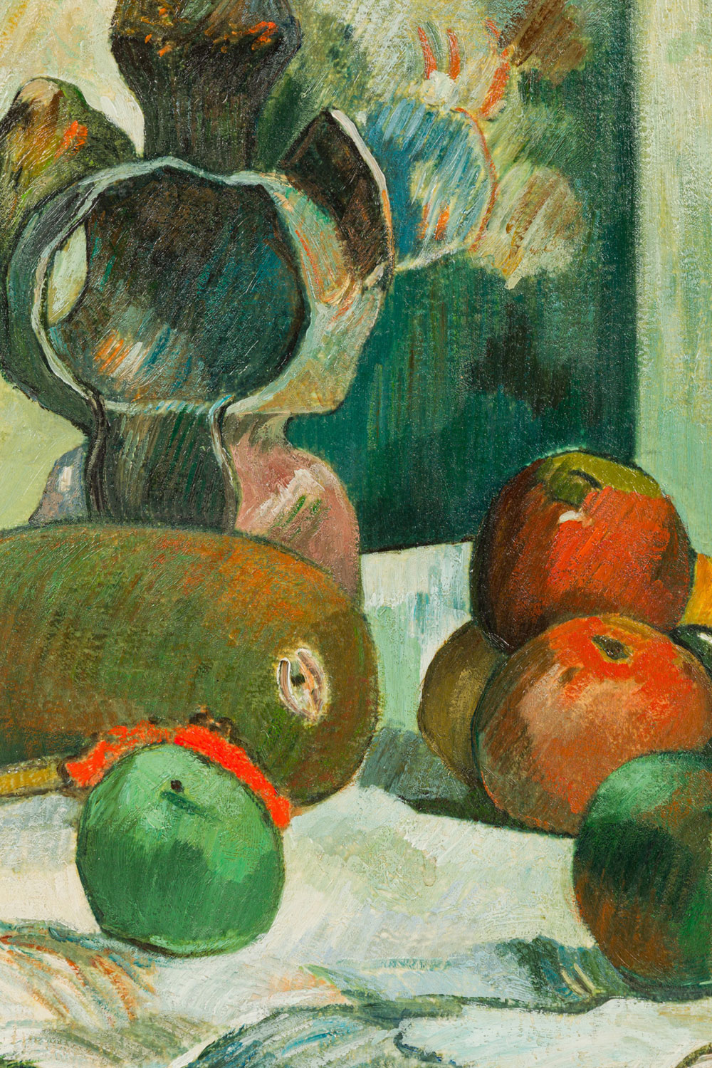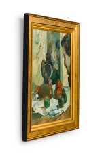 Copy of an impressionist painting titled "Still Life With Profile of Laval" Showing fruits on a table with portrait