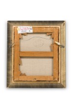 Copy of an impressionist painting titled "Still Life With Profile of Laval" Showing fruits on a table with portrait.