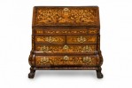 Dutch Rococo Bombe Marquetry Inlaid Drop Front Desk / Secretary