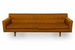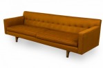 Edward Wormley for Dunbar American Mid-Century Brown Tufted Floating Three-Seat Sofa
