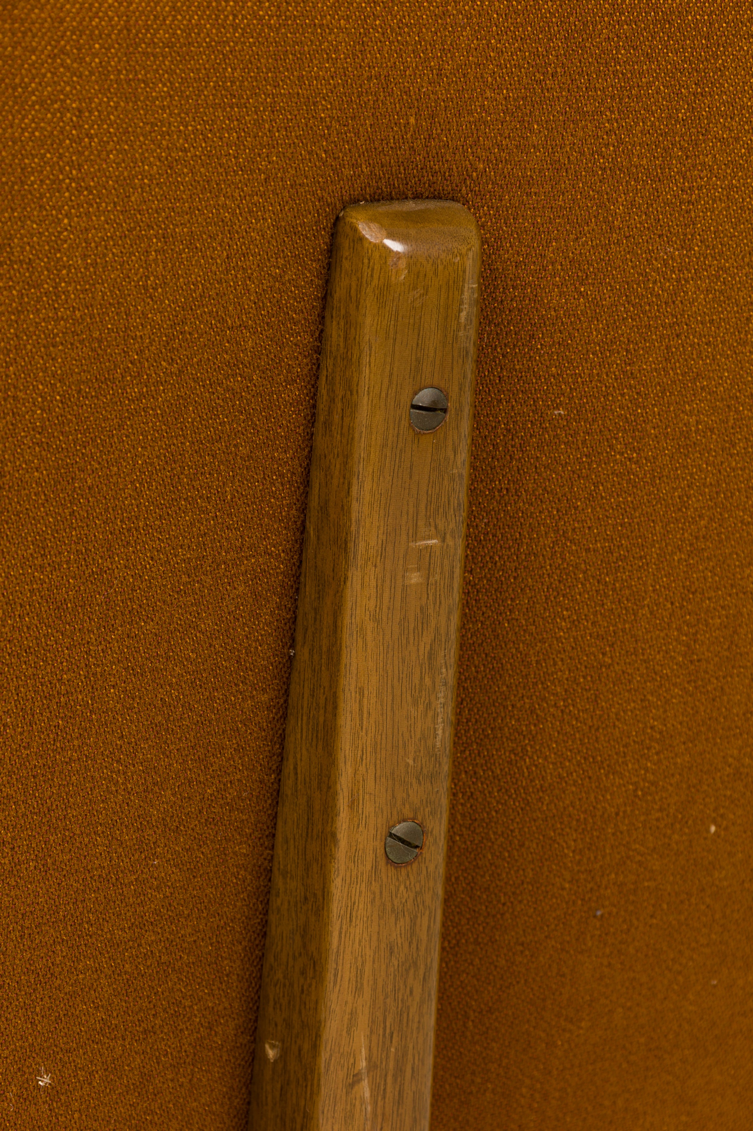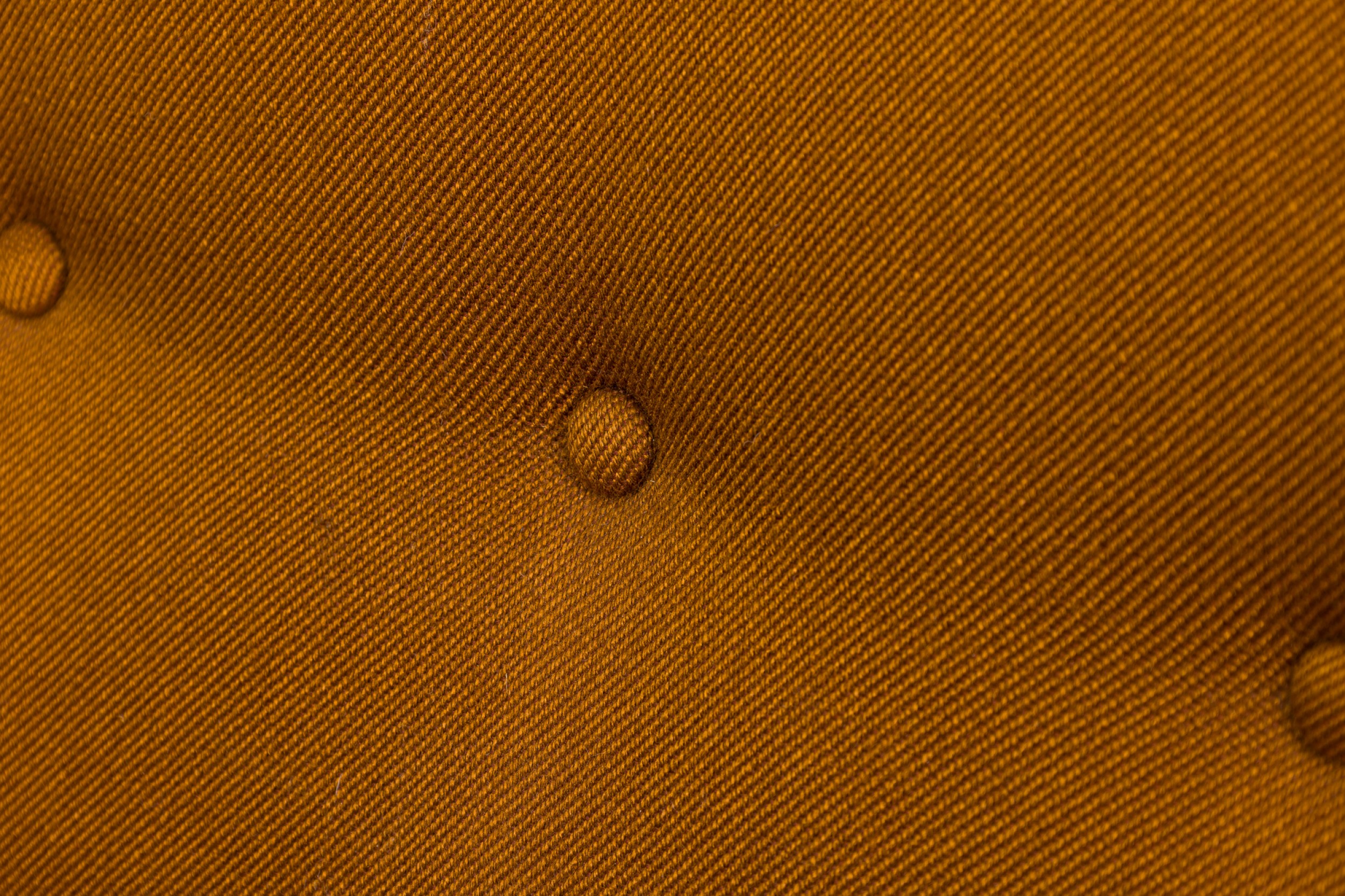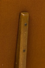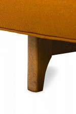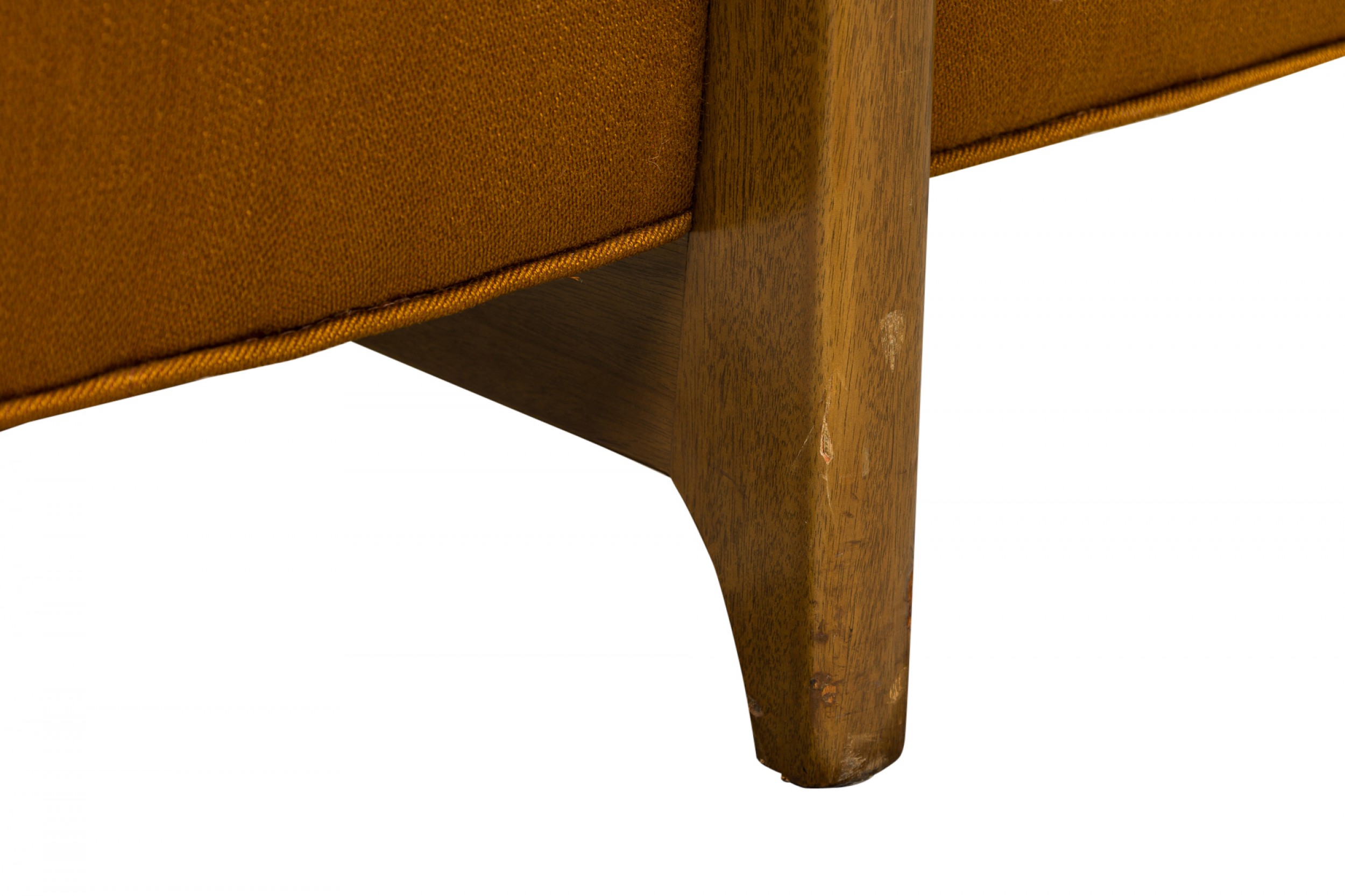 Style: Mid-Century Materials & Techniques: Fabric, tufted, upholstered, wood Category: Seating Good; Wear consistent with age and use