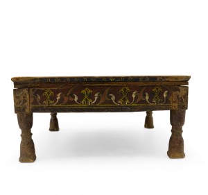English Anglo-Indian (19th Cent) square foot stool with a decorated apron
