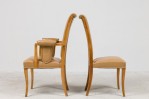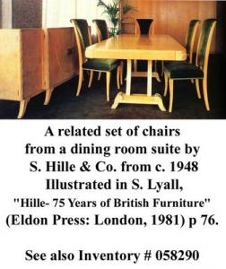SET of 8 English Art Deco maple high back dining chairs with beige leather upholstery (2 arms:22½"w x 26"d x 42"h/6 side) (S. Hille & Co., c.1948)