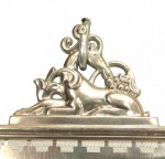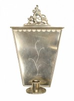 Style: Art Deco Materials & Techniques: Metal, pediment, pewter Category: Lighting