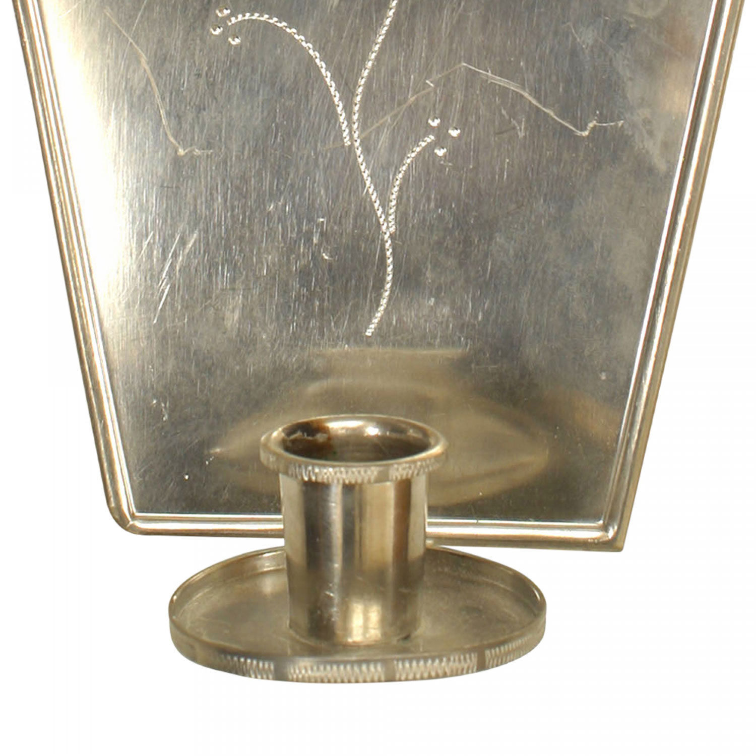 Pair of English Art Deco Pewter Keystone Wall Sconces