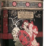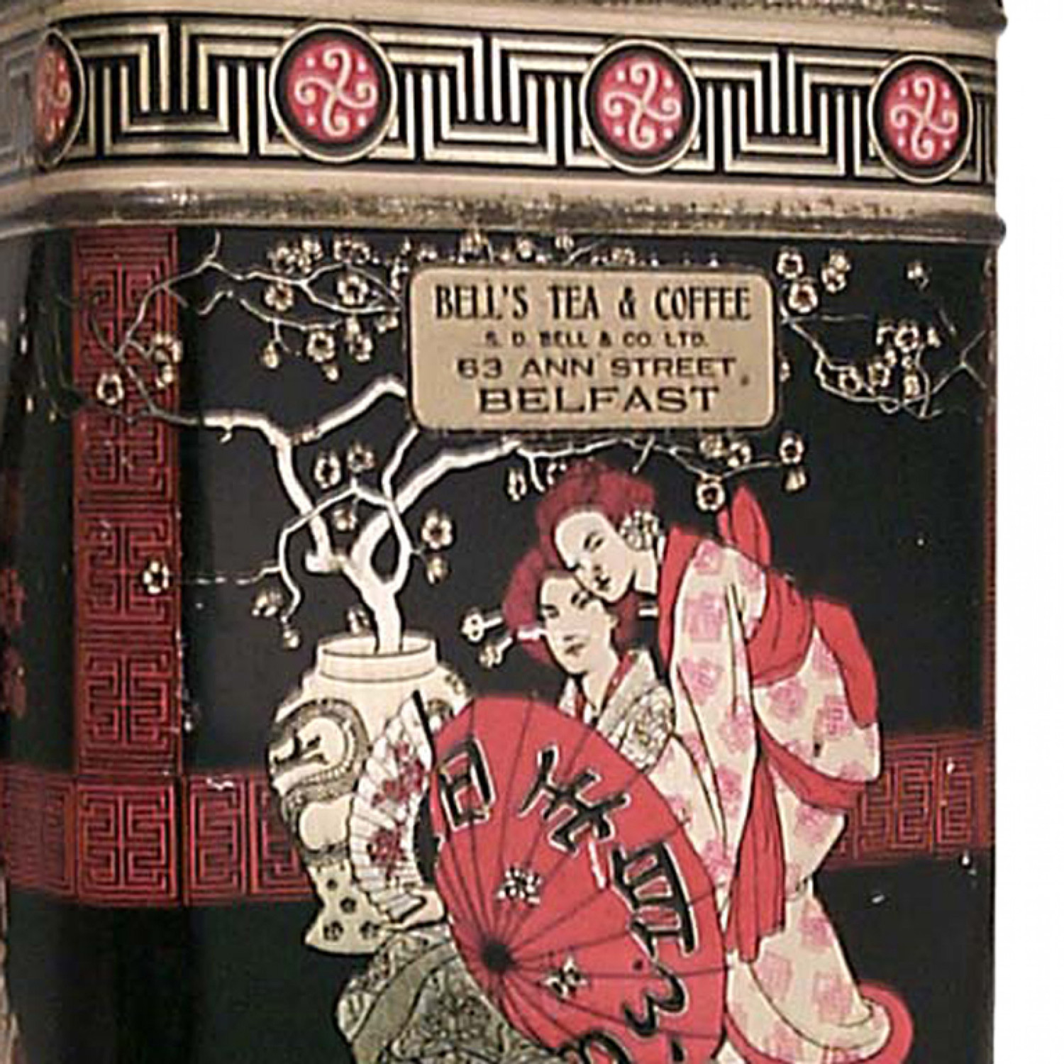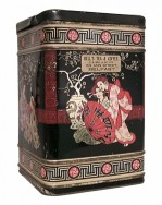 English (20th Century) small black painted tole tea canister with chinoiserie decoration.
