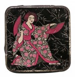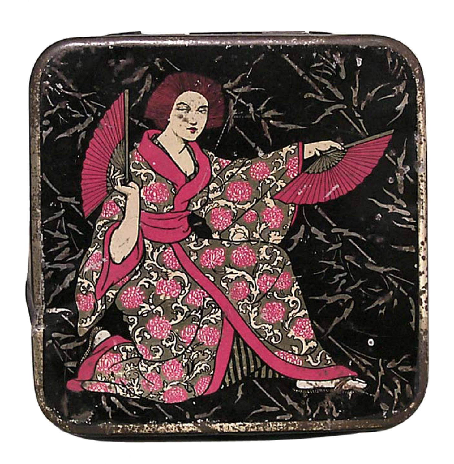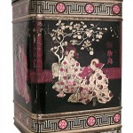 English (20th Century) small black painted tole tea canister with chinoiserie decoration