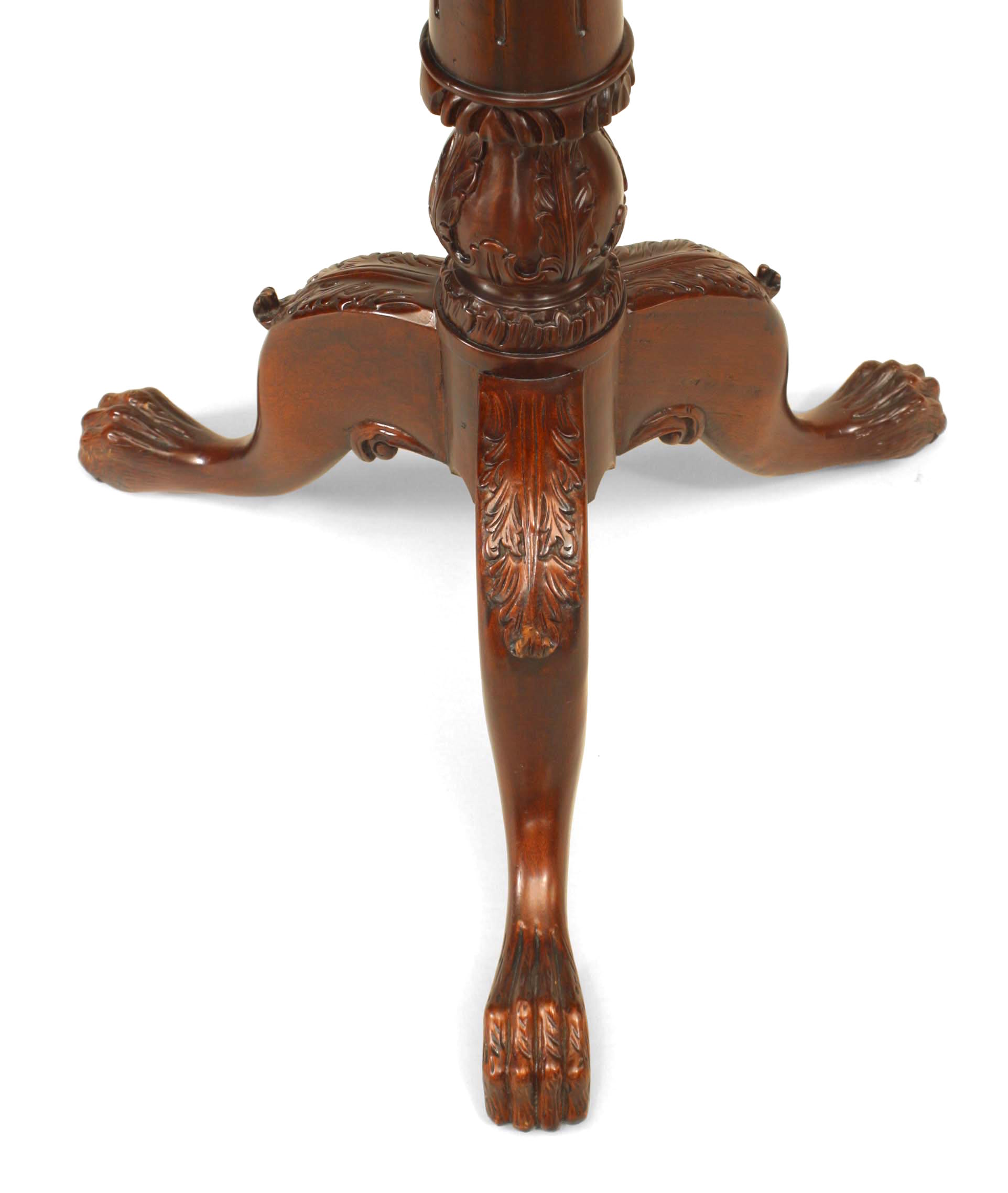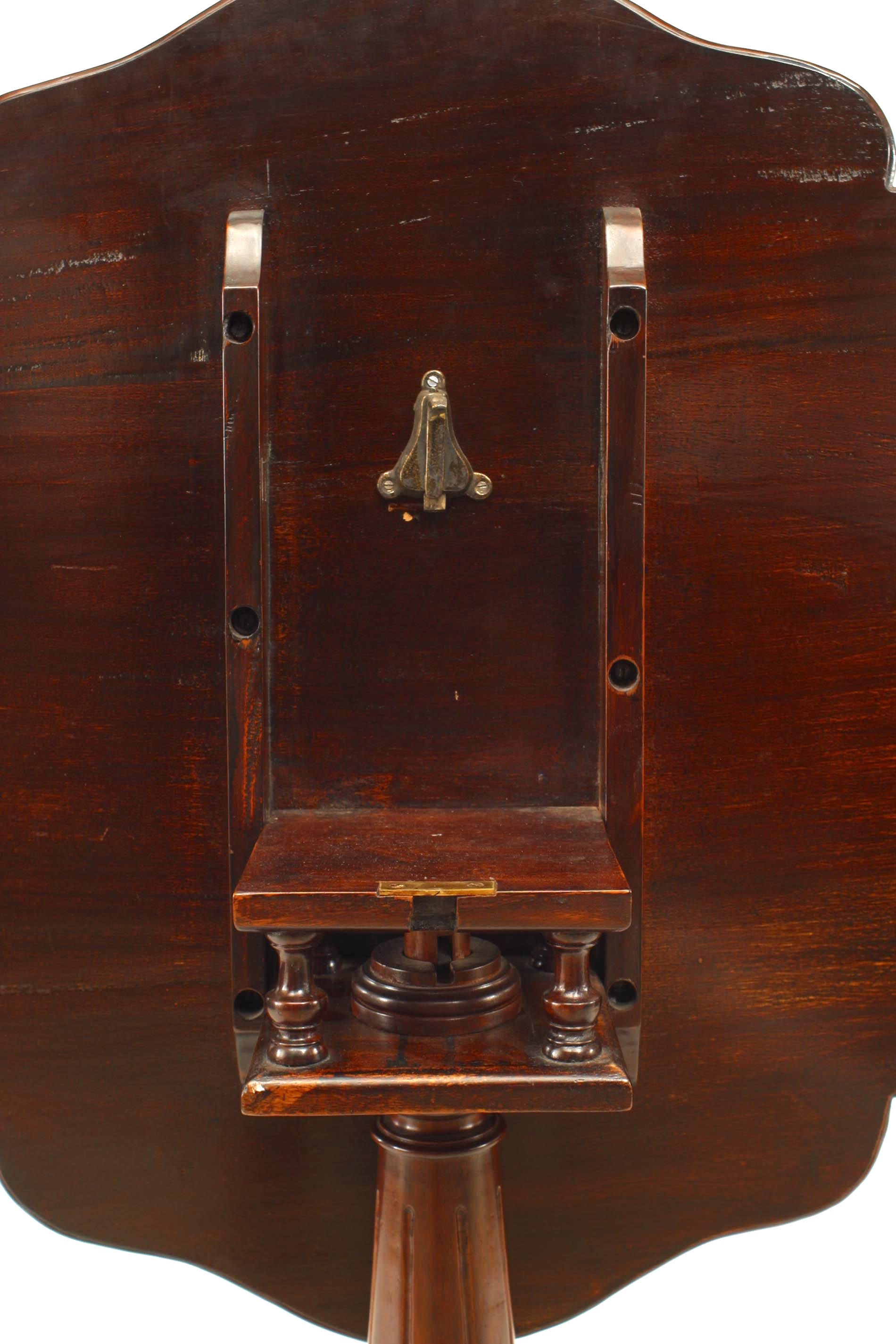 English Chippendale-style (20th Century) mahogany pedestal base end table with spindle gallery tilt top..