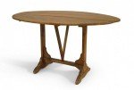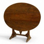 English Country-style (19th Century) oval pine tilt top end table with trestle base.