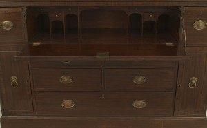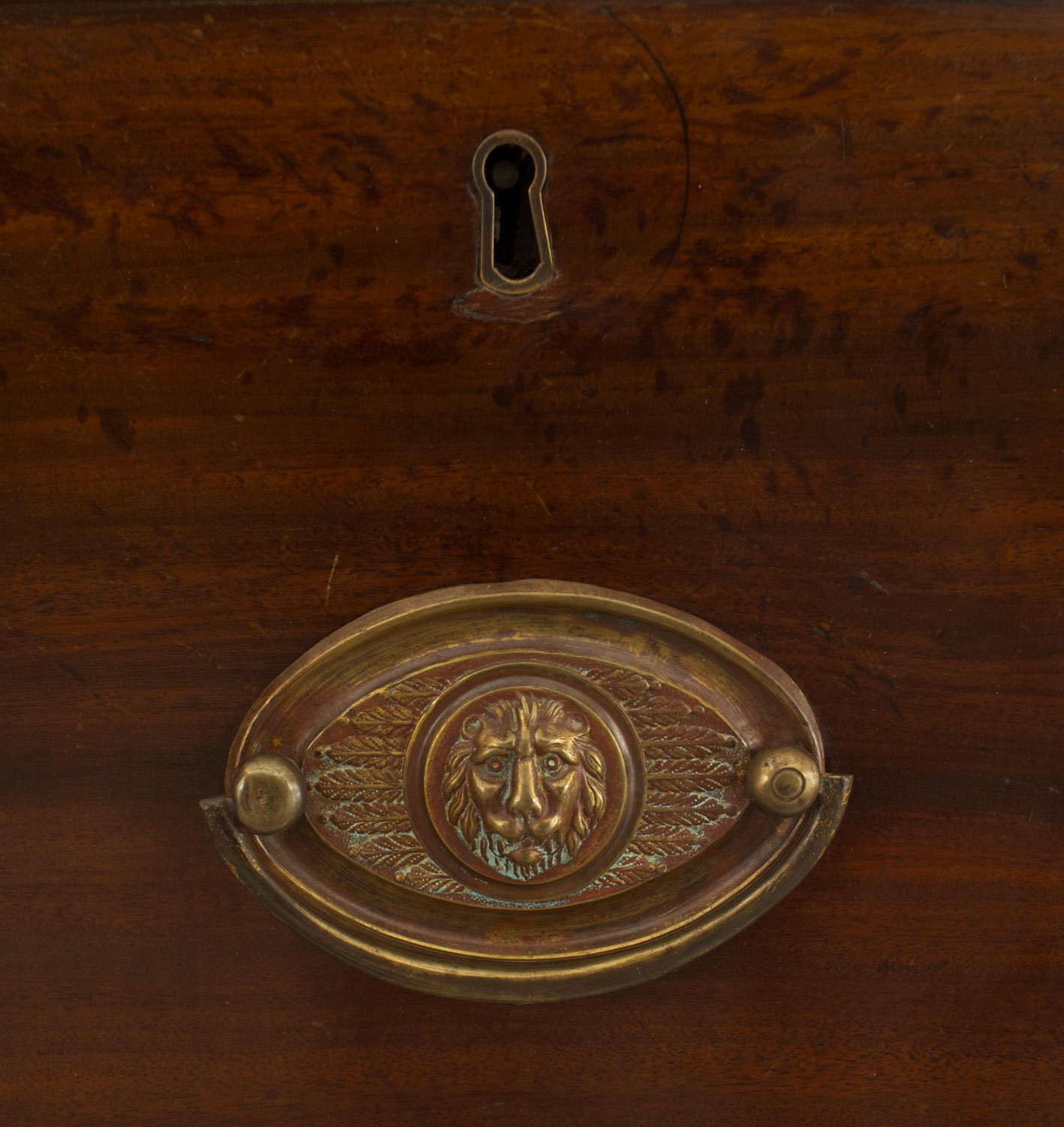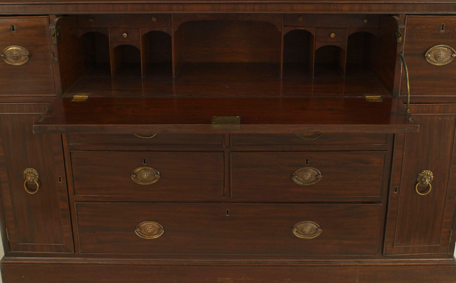 Style: English Materials & Techniques: Brass, glass, mahogany Category: Cabinets & Case Goods, Office/Library Good; Wear consistent with age and use