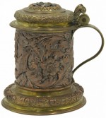 English silver plate and gilt tankard with floral and scroll design and 1752 hallmark..