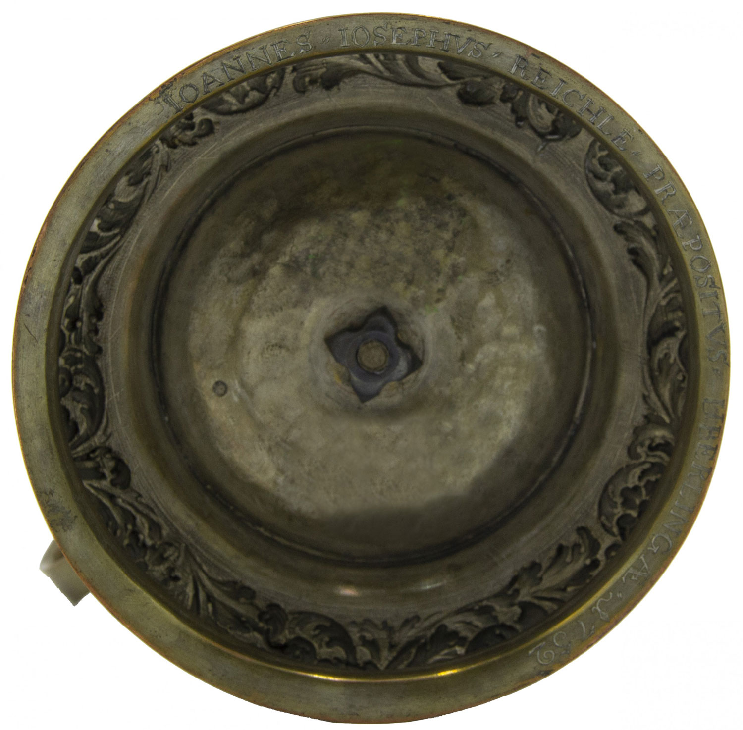 English silver plate and gilt tankard with floral and scroll design and 1752 hallmark.