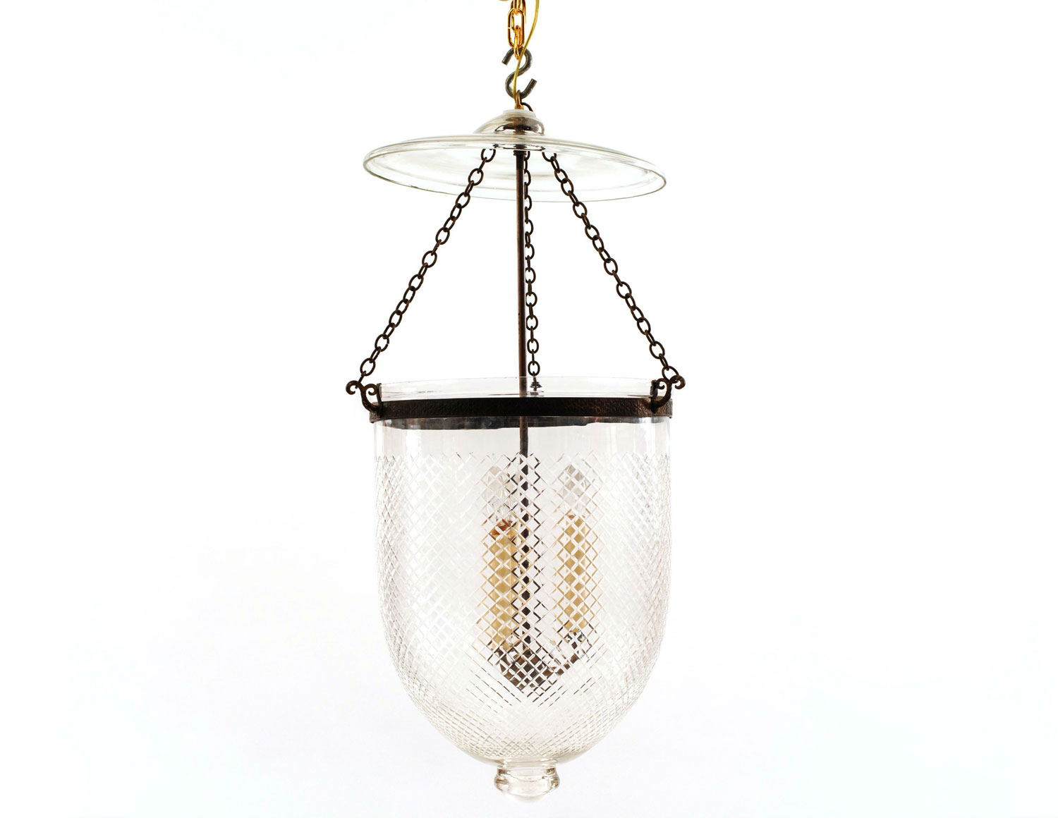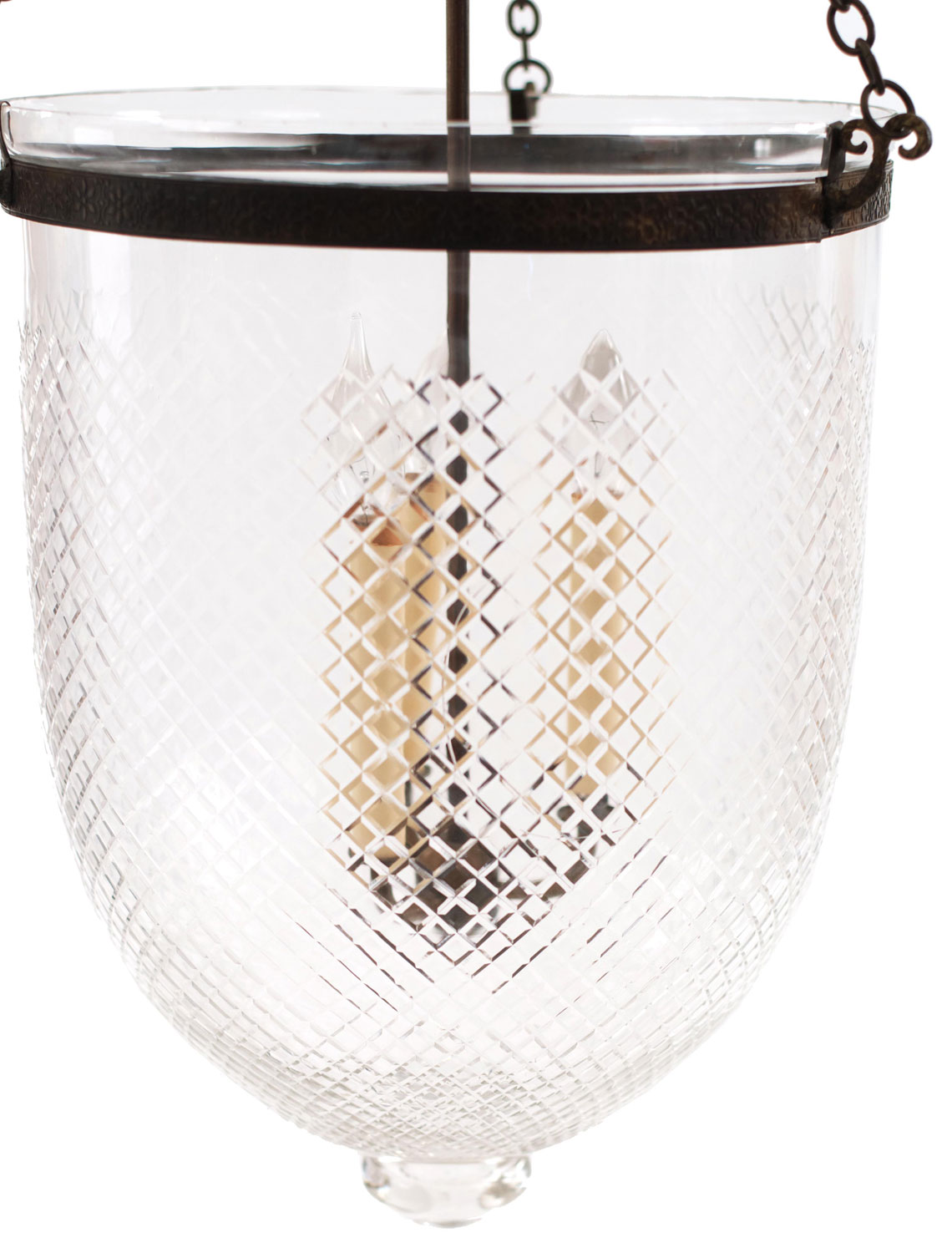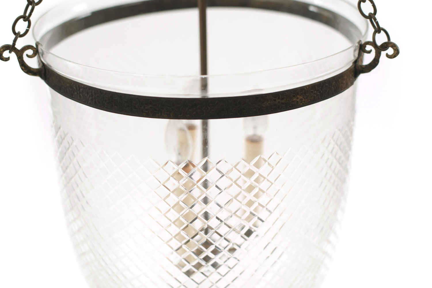 English Georgian-style (20th Century) bell jar chandelier with geometric cut crystal design