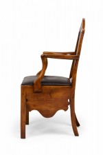 English Hepplewhite Elm Wood Leather Seat Commode Armchair