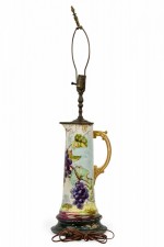 English Mid-Century Pitcher Form Ceramic Grape Motif Table Lamp