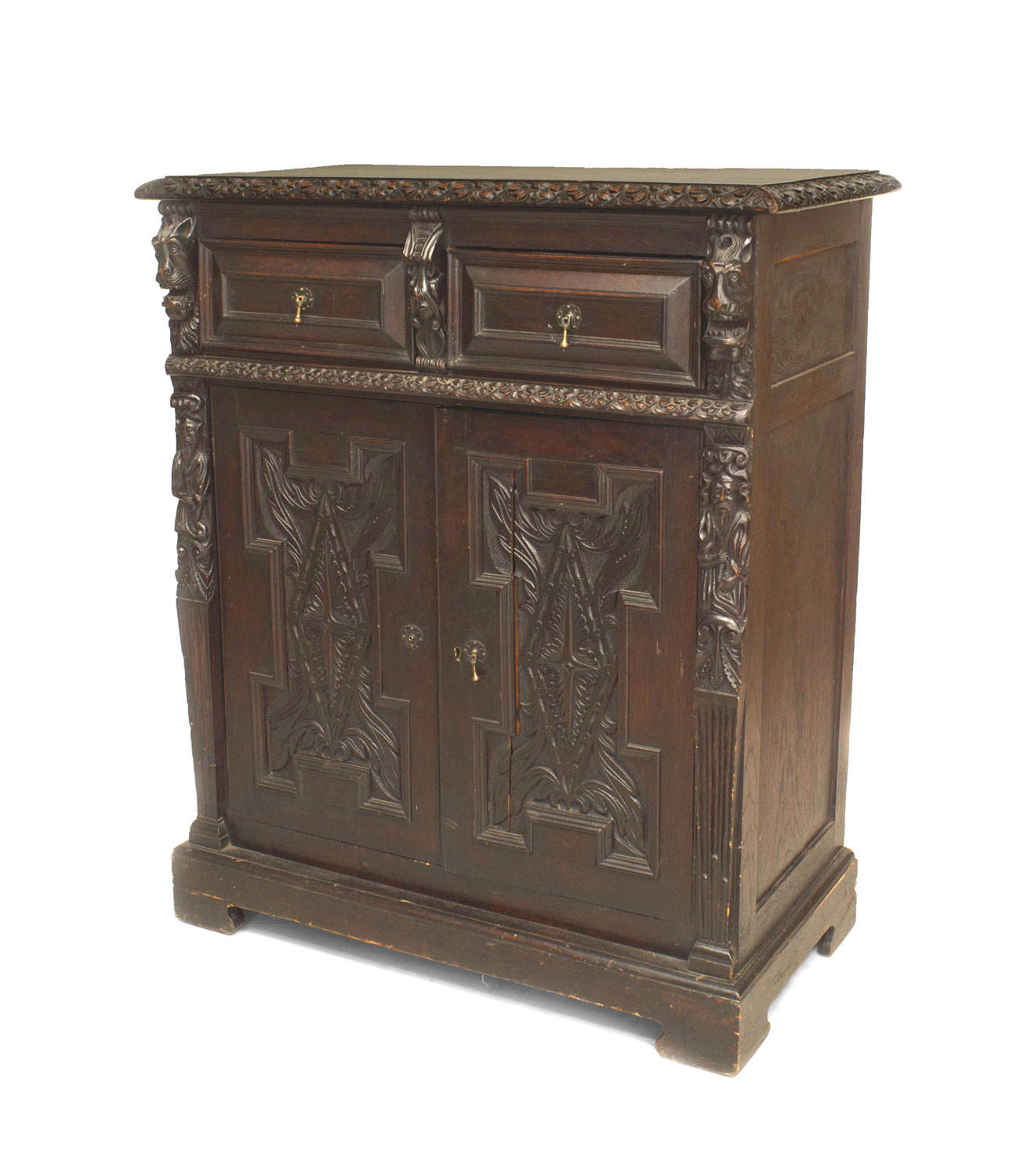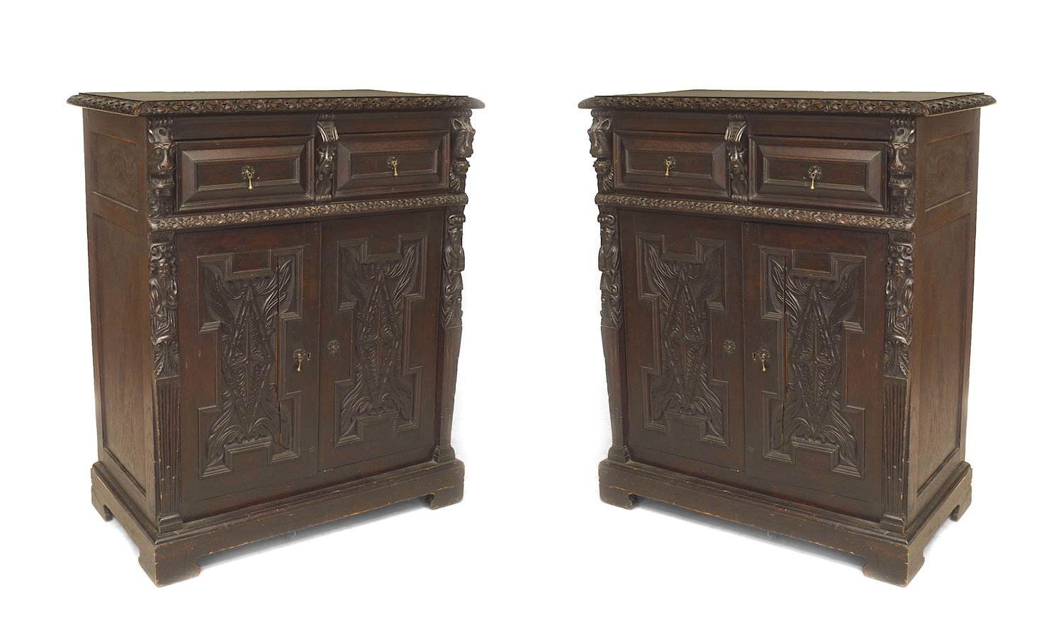 Pair of English Renaissance Stained Oak Cabinets