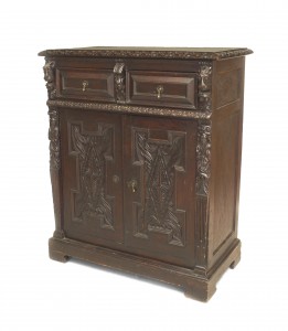 Style: English Materials & Techniques: Carved, oak Category: Tables, Cabinets & Case Goods, Dining Room Good; Wear consistent with age and use