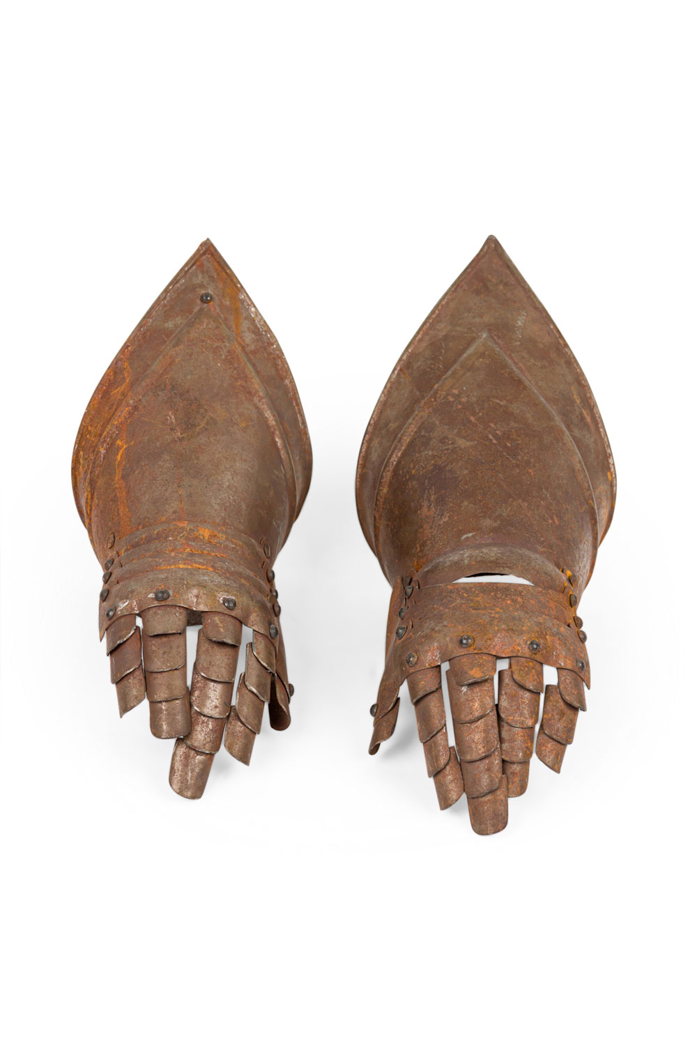 PAIR of English Renaissance-style (20th Century) metal armor gauntlet gloves. (PRICED AS PAIR)