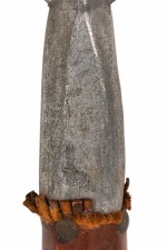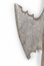 English Renaissance-style short halberd spear with wrapped leather shaft and 19½-inch steel ax blade..