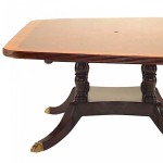Style: English Materials & Techniques: Brass, mahogany Category: Tables, Office/Library, Dining Room Condition: Additional Dimensions: Table has 4 sections. Each Section is 54 inches wide. The End Sections are 70 inches deep at the end, 86 inches deep where it connects with the Center Sections. The Center Sections are 86 inches deep and then 90 inches deep where they meet. nn 90 inches deep at the center which tapers to 70 inches at the ends. The top shows wear and tear.