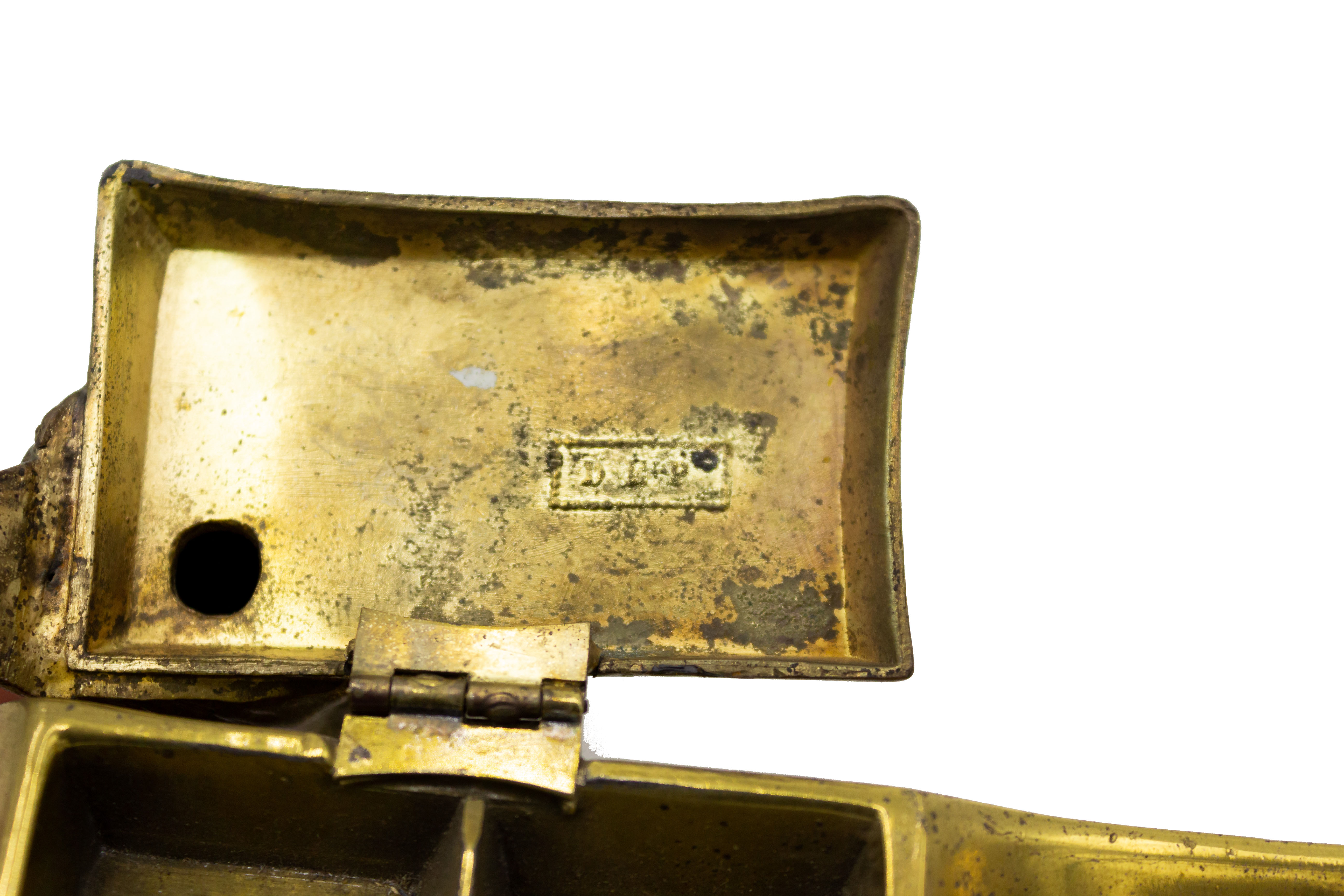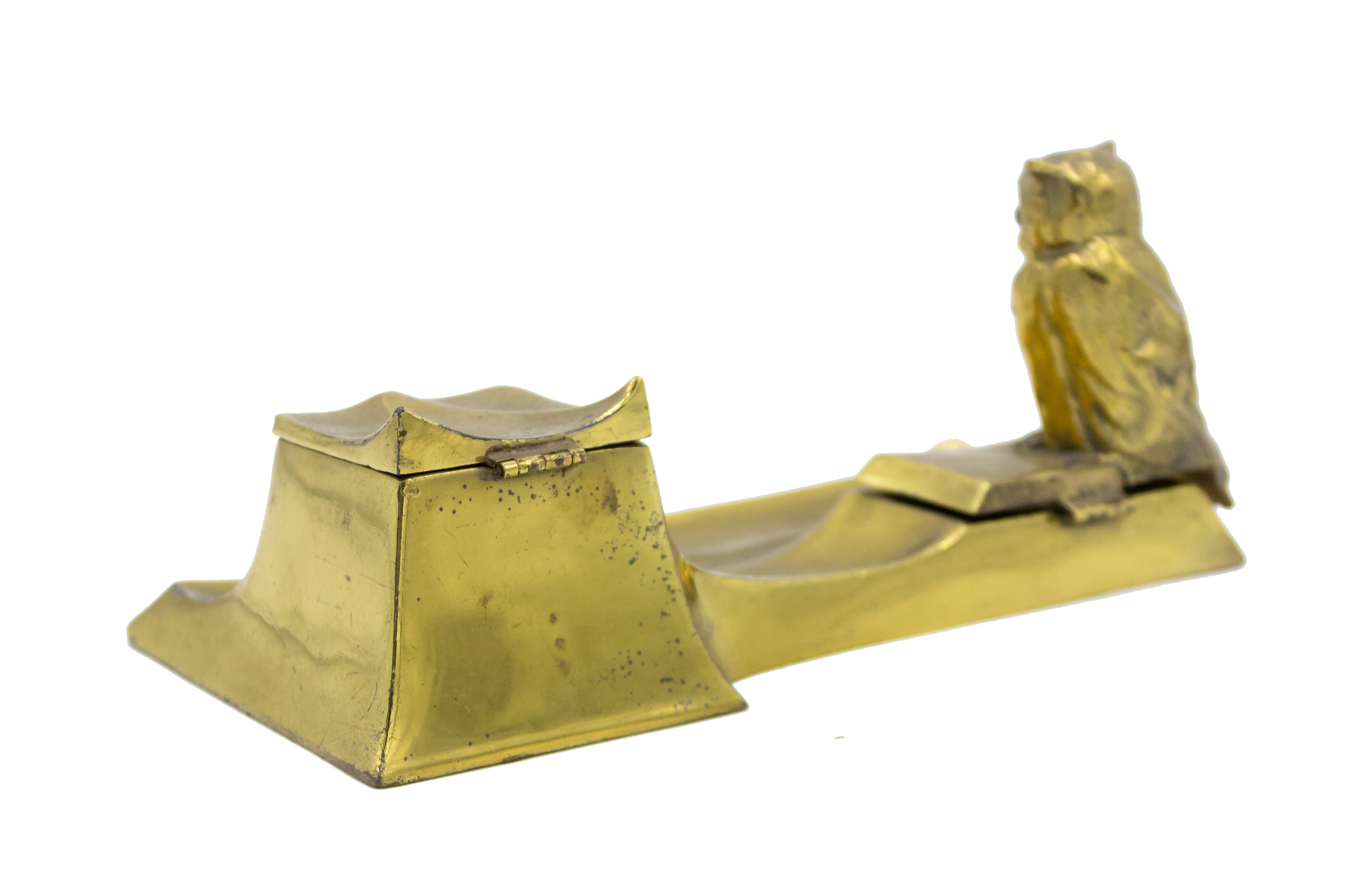 English Victorian Brass Owl Inkwell