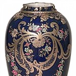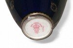 English Victorian cobalt blue porcelain vase with gold scroll design and enamel trim (Crown Derby).