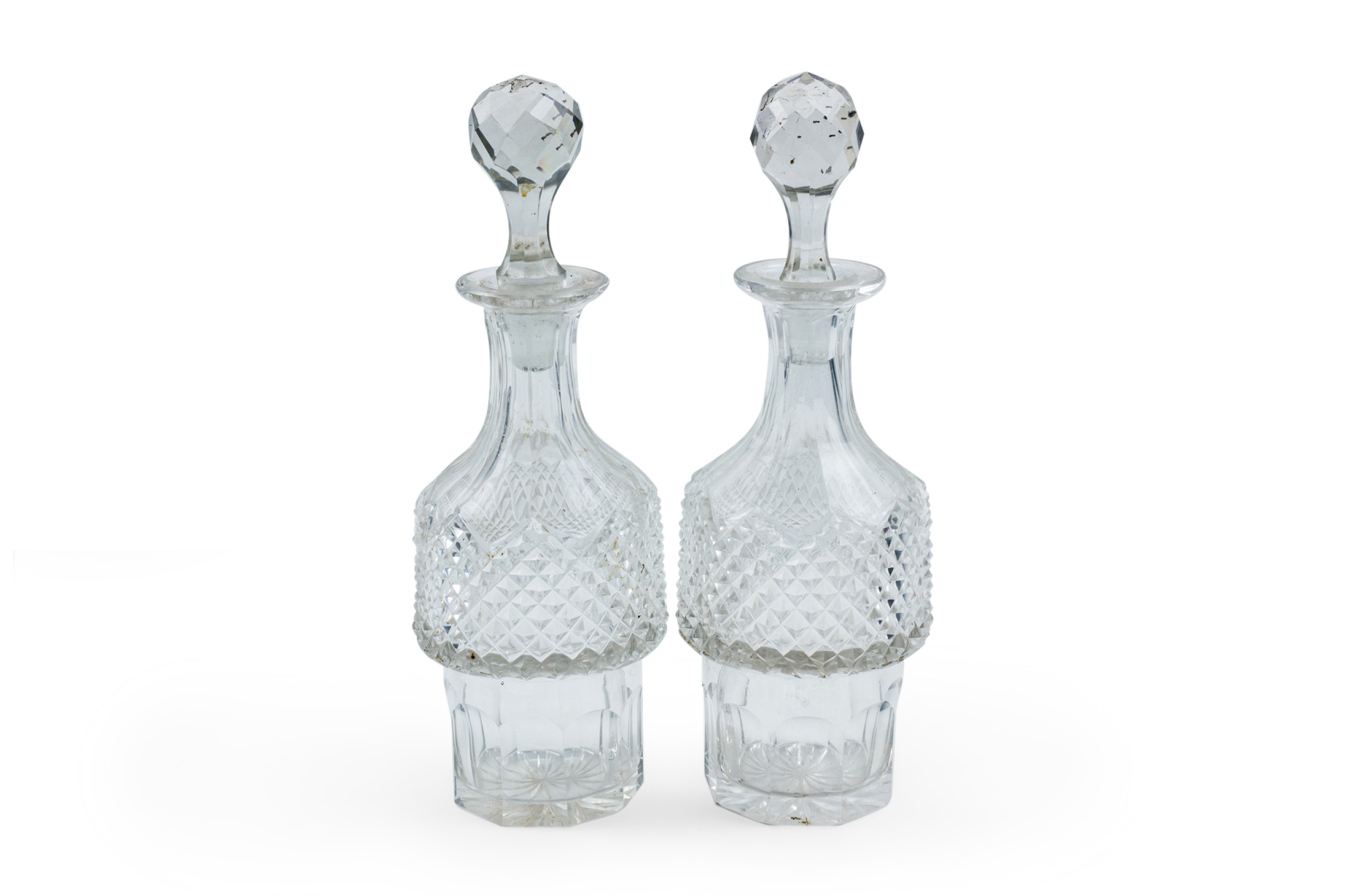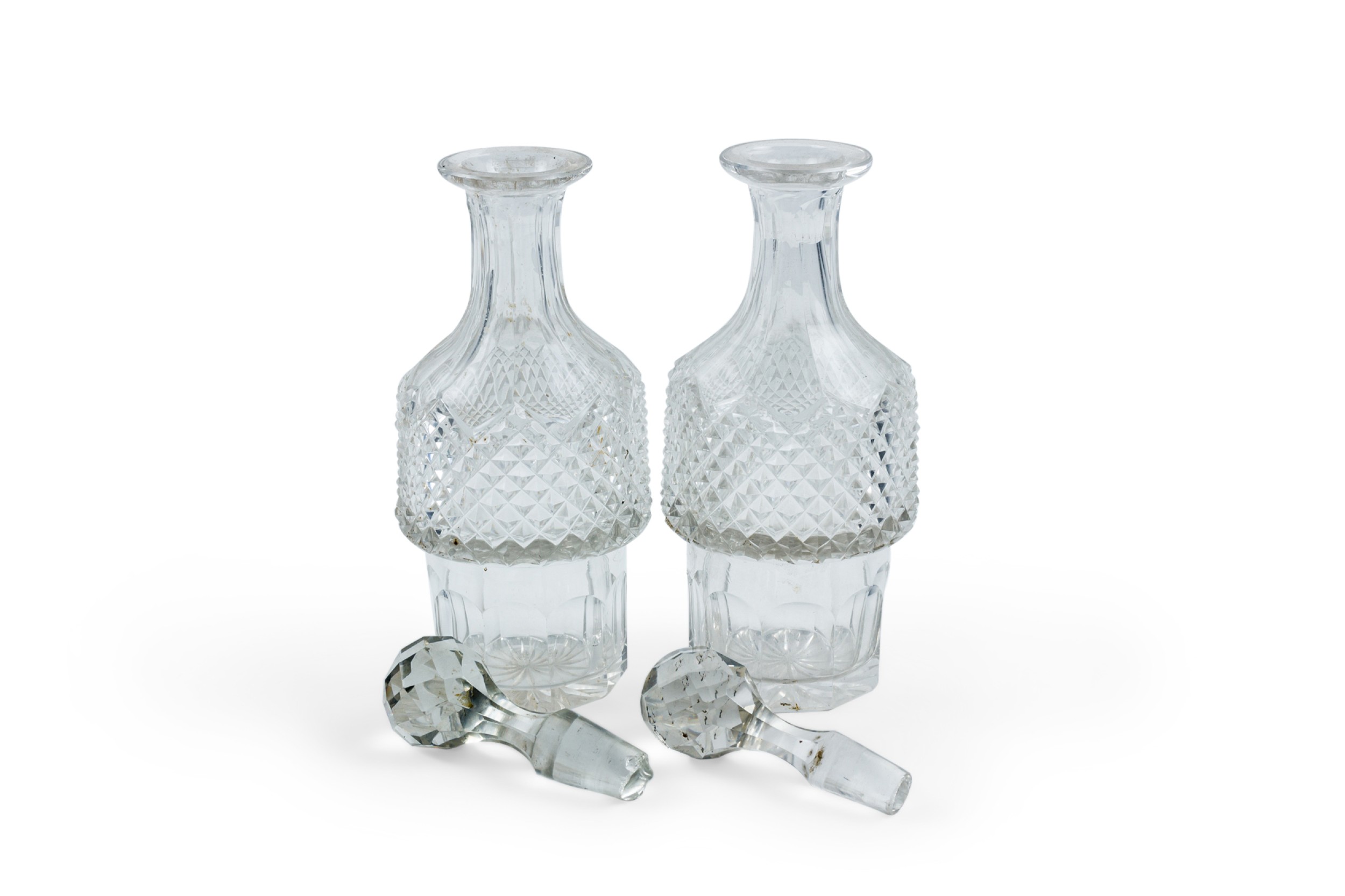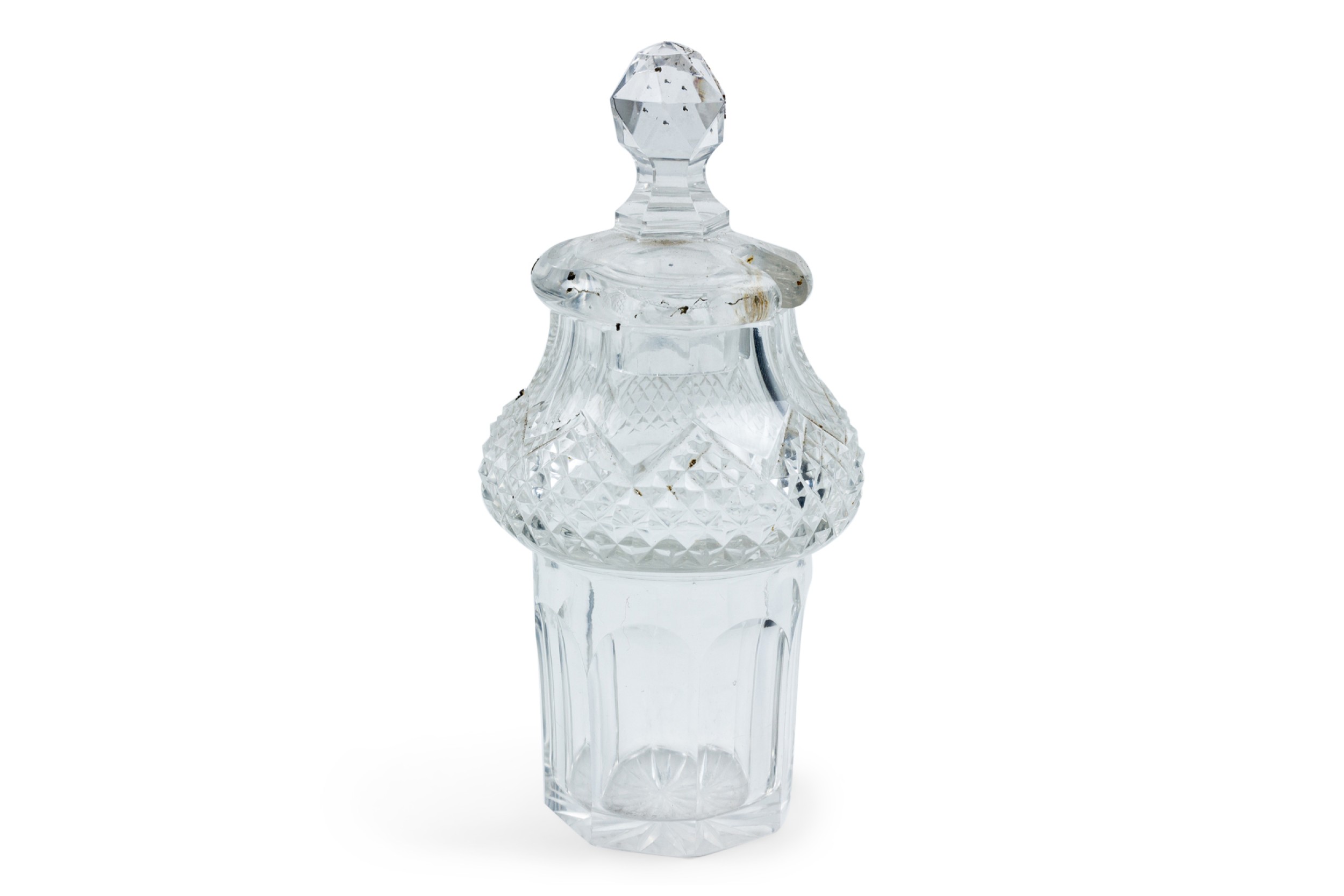 Style: English Materials & Techniques: Crystal, scalloped Category: Dining Room, Accessories/Décor/Bric-a-Brac Condition: Missing one of the lids. Good; Wear consistent with age and use