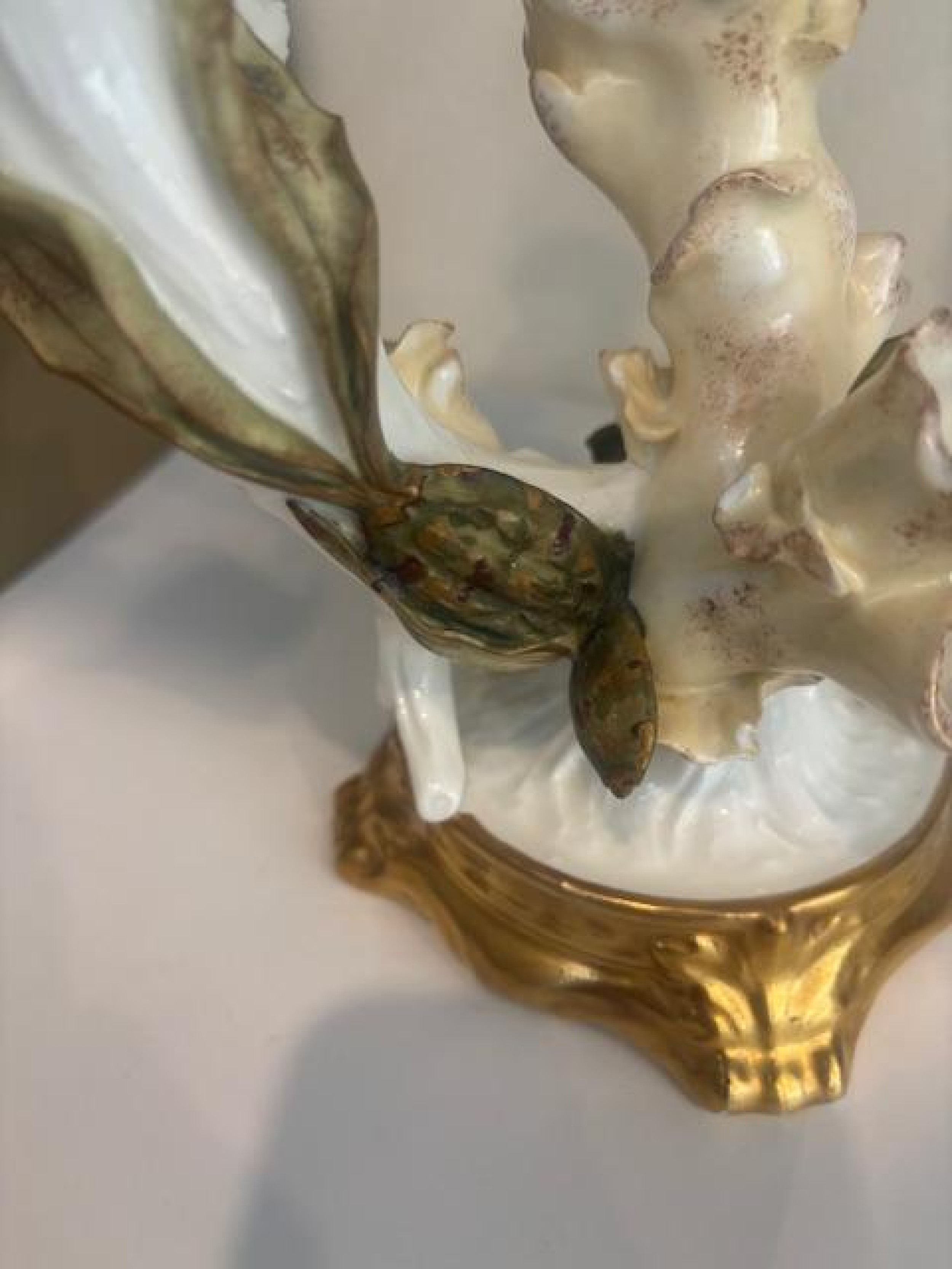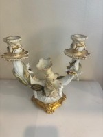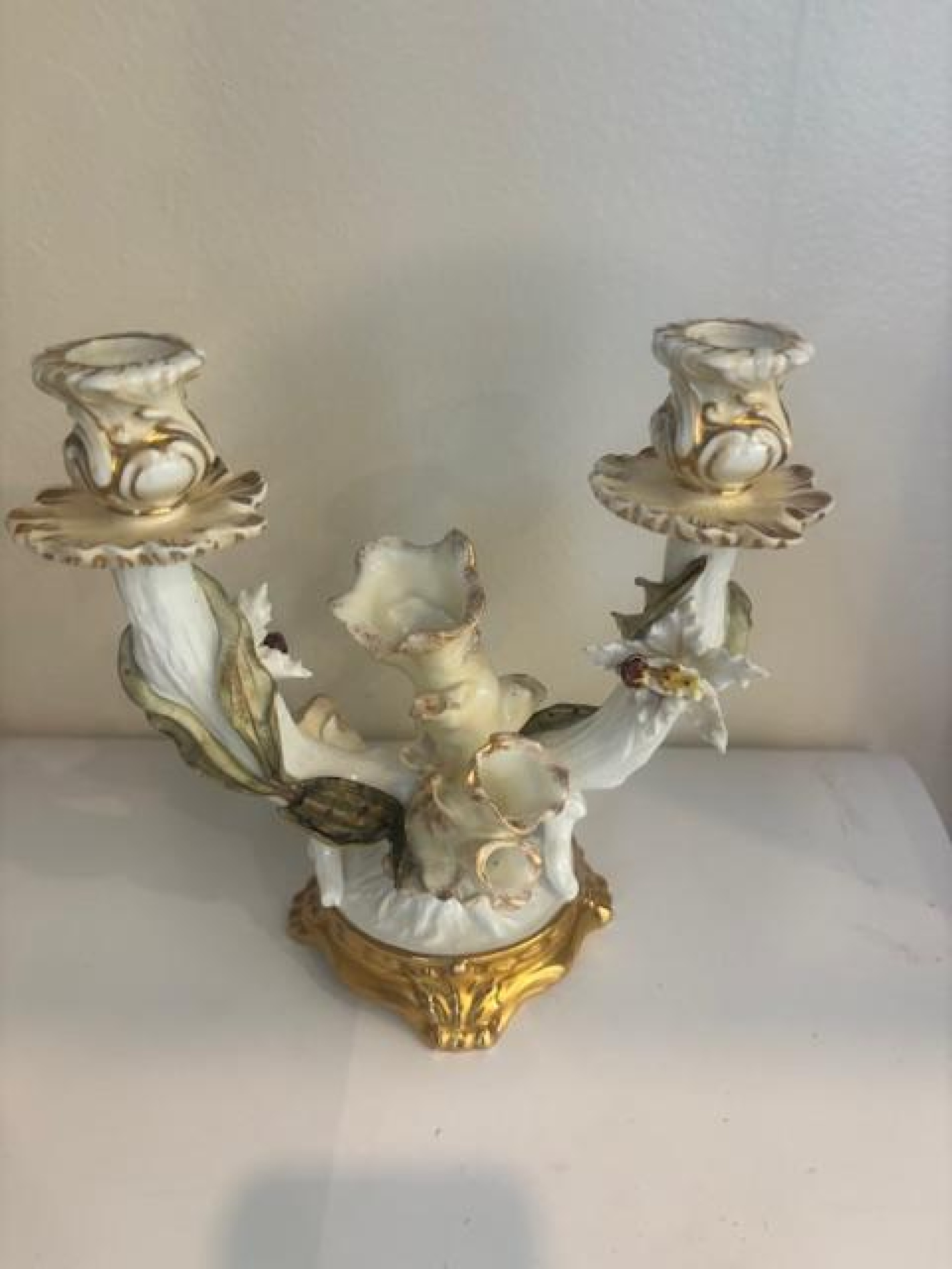 Pair of English Victorian 2 arm Moore porcelain candelabra with a floral design