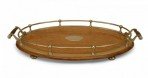 English Victorian oval oak tray with silver plate gallery and handles with oval center medallion..