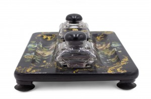 English Victorian Papier-Mache Inkwell