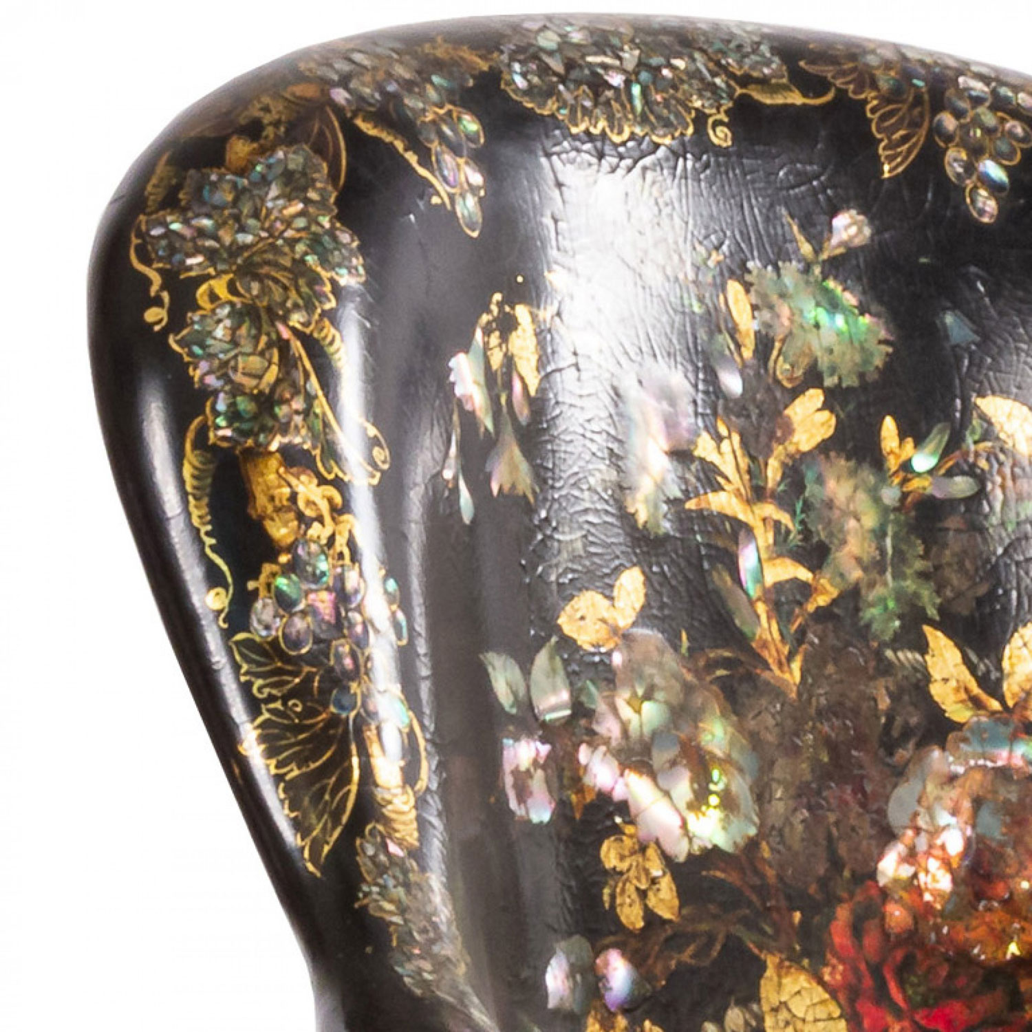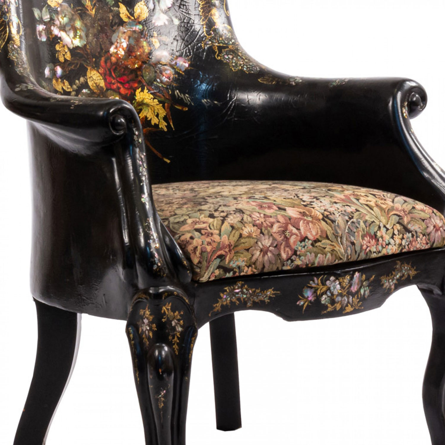 Style: English Materials & Techniques: Pearl, lacquered, inlaid Category: Seating Condition: Some damage to finish.