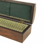 English Victorian (19th Century) rosewood pen box of rectangular shape with domed hinged lid and mother of pearl inset.