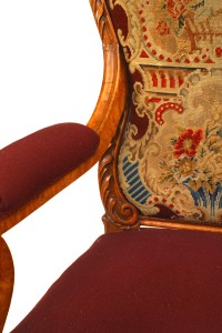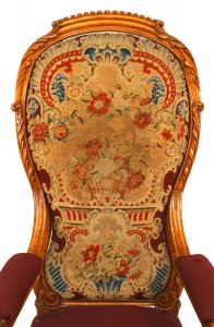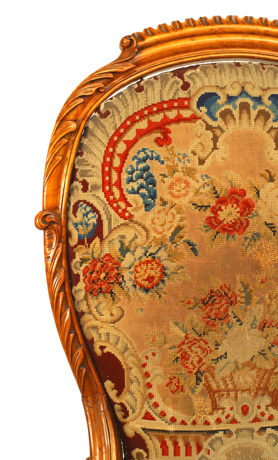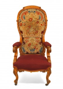Style: English Materials & Techniques: Wood, satinwood, fabric, carved, needlepoint Category: Seating