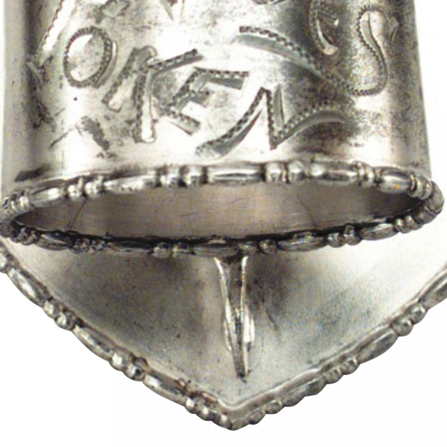 English Victorian silver plate napkin ring with etched "Love Token" on heart shaped base