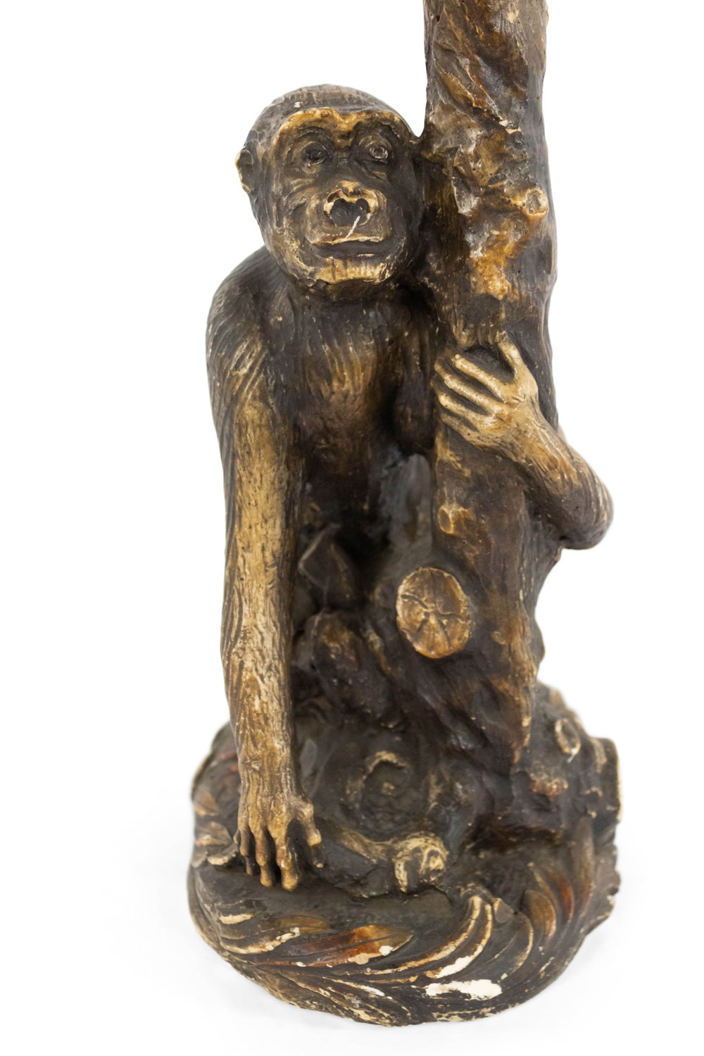 English Victorian style (20th Century) porcelain table lamp of monkey holding post..