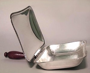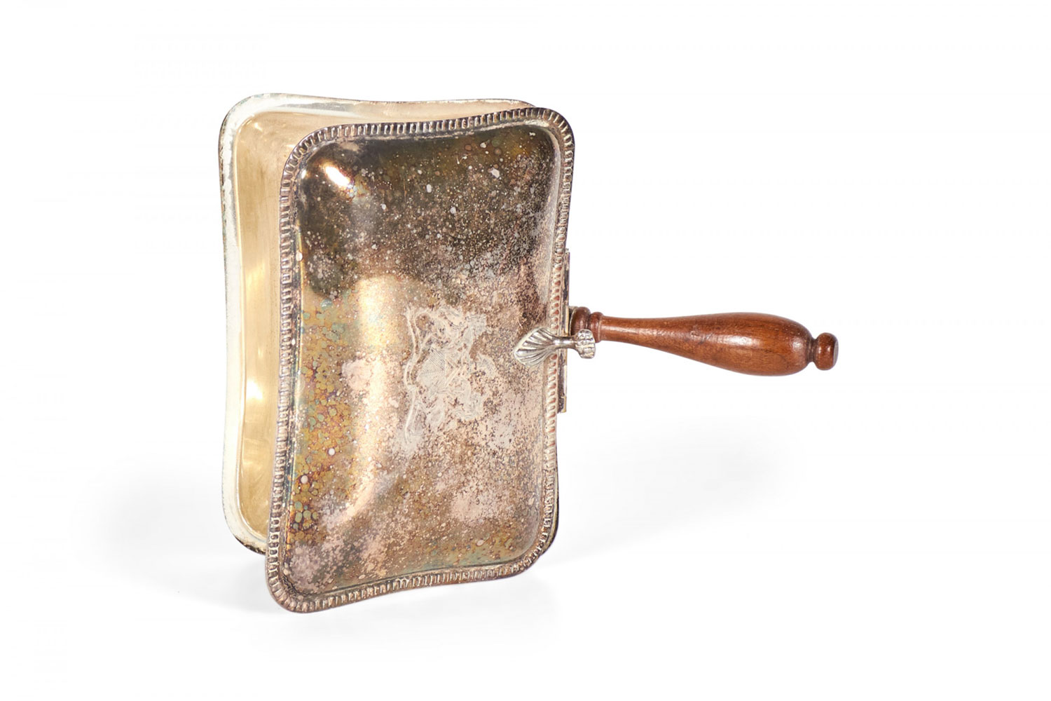English Victorian-style (19/20th Century) silver plate silent butler with wooden handle.