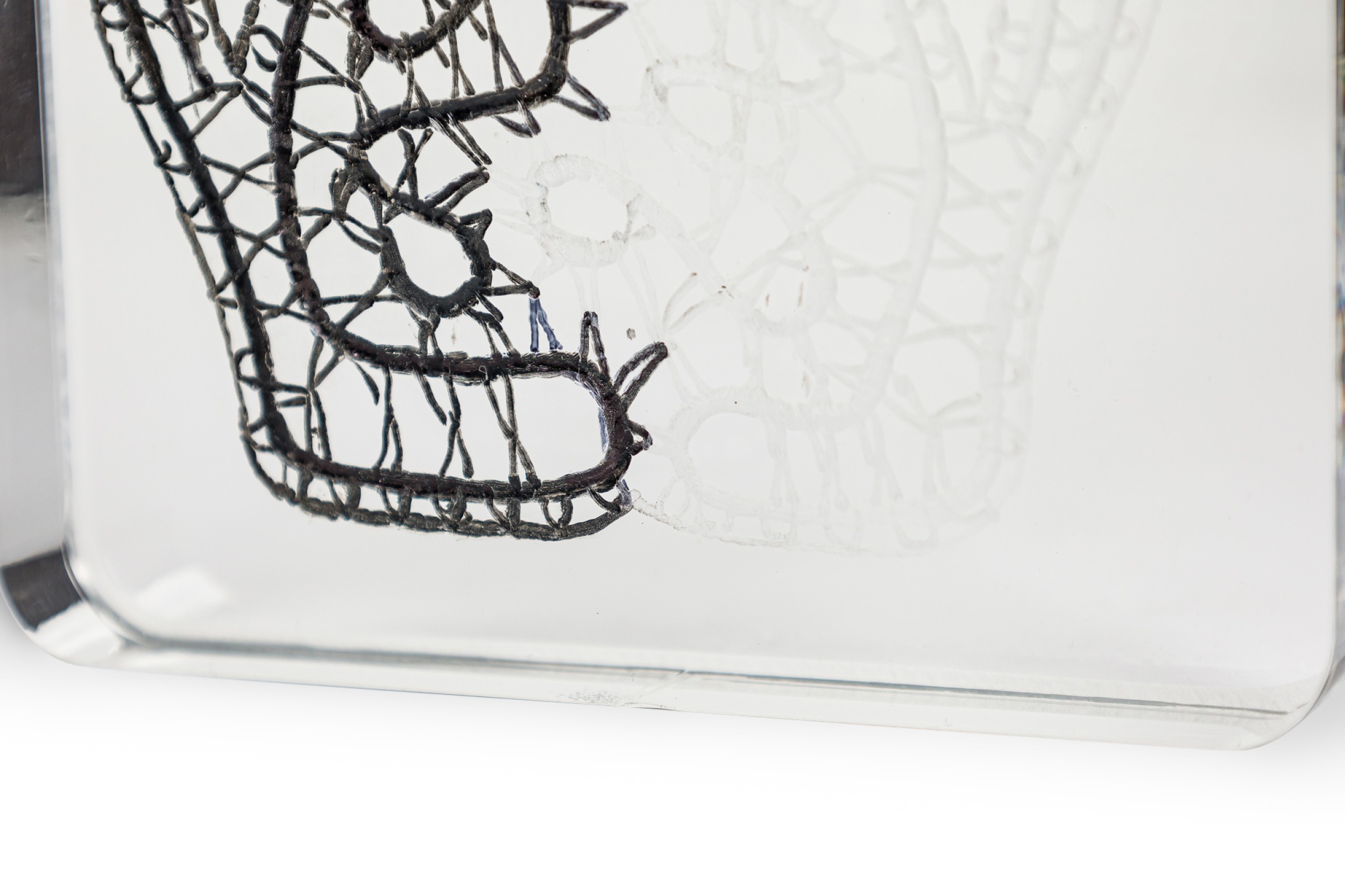 Eva Petric Biography Eva Petric (b. 1983) is a Slovenian full multimedia artist based in New York, Vienna and Ljubljana. Petrics international multicultural background is reflected in the impressive body of work ranging from photography, video, performance and installation art often involving scent, writing, and most recently EVAcuate project; art installations translated into sound waves. As Petric states, “using various media seems indispensable to me. When moving from one cultural space to another, which has been my way since I can remember, I spontaneously reached for the media at hand to be able to communicate and be understood." Petric creates a unique atmosphere with the aim of communication, as with photography where there is an exploration of the past and future into the present by using the imagery of shadows as an installation; creating a new space immersing the viewer into the artwork. The series Earth, Earthlings and Webs, currently on view at Newel, are a series of plexiglas figures with Idrija lace etchings after the artist's human shadow. These series serve as a catalyst and reminder of one's connection to our surroundings and our human interconnectivity. These artworks are the result of both an artistic exploration of artistic mediums and originates from Petric work with astronauts for the ESTEC ESA moon mission; Want it or not, being aware of it or not, everything in this universe is interconnected- meaning, that the extreme isolation I felt during the Moon Mission Simulation, does not exist in this universe. Petric holds a BA in psychology and visual arts from Webster University Vienna, and an MFA in new media, from Transart Institute (New York /Berlin) and Danube University Krems. Petric art has been shown in over 100 solo and 140 group exhibitions all over the world. MUSEUM COLLECTIONS Permanent collection the Fortress Kluže Museum, Slovenia MOYA Wien Museum of Young Art, Austria Spiritual Art collection, Artmark Gallery Vienna, Austria International Centre for Graphic Art, Ljubljana, Slovenia Centro Cultural Borges, Buenos Aires, Argentina Salon fuer Kunstbuch, Vienna, Austria; Pilonova Galerija Ajdvoščina, Slovenia Museum Moderner Kunst Kaernten, Klagenfurt, Austria Albertina Museum Vienna, Austria Bozidar Jakac Regional Museum, Kostanjevica, Slovenia Butler institute of American Art, Youngstown, Ohio, USA The Goulandris Art Collection, Greece: “Artist to Students” 1st educational art collection for Highschool students, Slovenia RIKO art collection, Ljubljana, Slovenia New Wave – contemporary art collection of Ministry for Foreign Affairs Republic of Slovenia VideoTage Media Art Collection, Cattle Depot Artist Village, Hong Kong Brioni National Park, Croatia AKH Vienna, Austria AWARDS ( SELECTION ): 2024 Hubert Sielecki Preis 2024 2022 Excellency award in photography, Utazu Art Awards Biennale, Japan 2021 Silver Recognition for The Best Innovation, Slovenia, Chamber of Commerce 2019 The Best of Ten Years, United Solo Festival, New York 2017 Best Performance Art Award, United Solo Festival, New York City 2017 Grand Prix 6th International Fine Arts Festival Kranj, Slovenia 2017 Grant of the Ministry of Culture of Slovenia; 2016 SNBA Silver medal for photography, Paris, France; 2011 Pfann Ohman Preis,Vienna, Austria 2010 Vordemberge-Gildewart Grant; Art critics choice 2008 by Association of Slovenian Art Critics 2006 Cicek award for best short digital video in Slovenia ART FAIRS : 2024 Photo Basel, Switzerland 2023 Art Market Photo Fair Budapest, Hungary 2023 Photo Basel, Switzerland 2022 Photo Basel, Switzerland 2021 Photo London 2021, UK 2018 CODE Kopenhagen, Denmark 2015 Budapest Art Photo, Hungary 2015 Vienna Fair, Austria 2011 Vienna Fair, Austria 2010 Paris Photo, France 2008 Rome, Milano, Bolzano, Italy 2008 Zurich, Switzerland