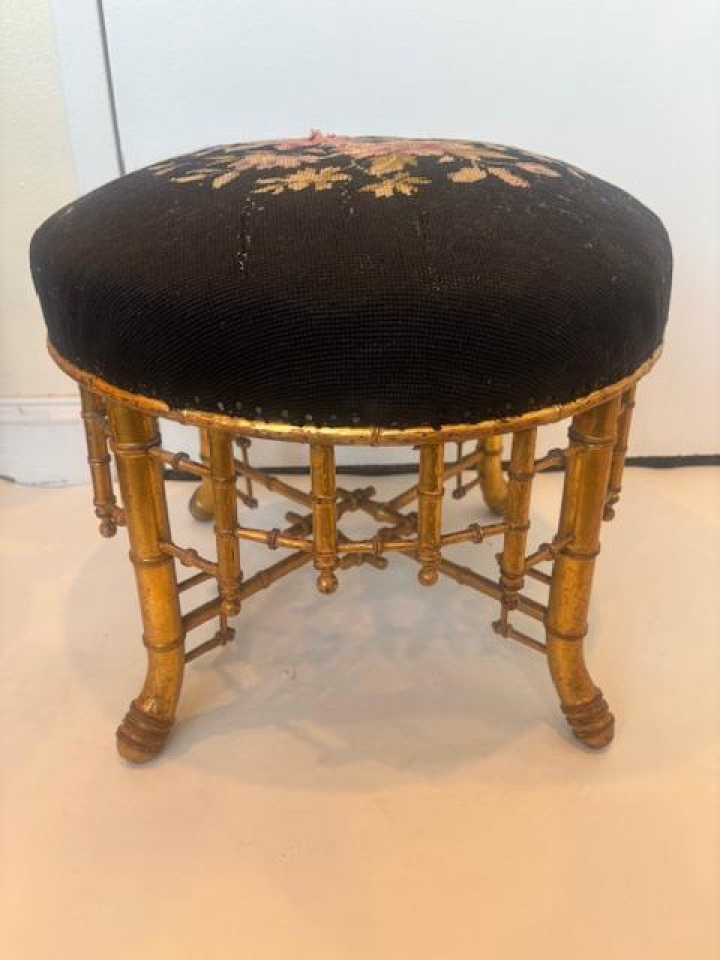 Aesthetics Movement Faux Bamboo Gilt Needlepoint Stool