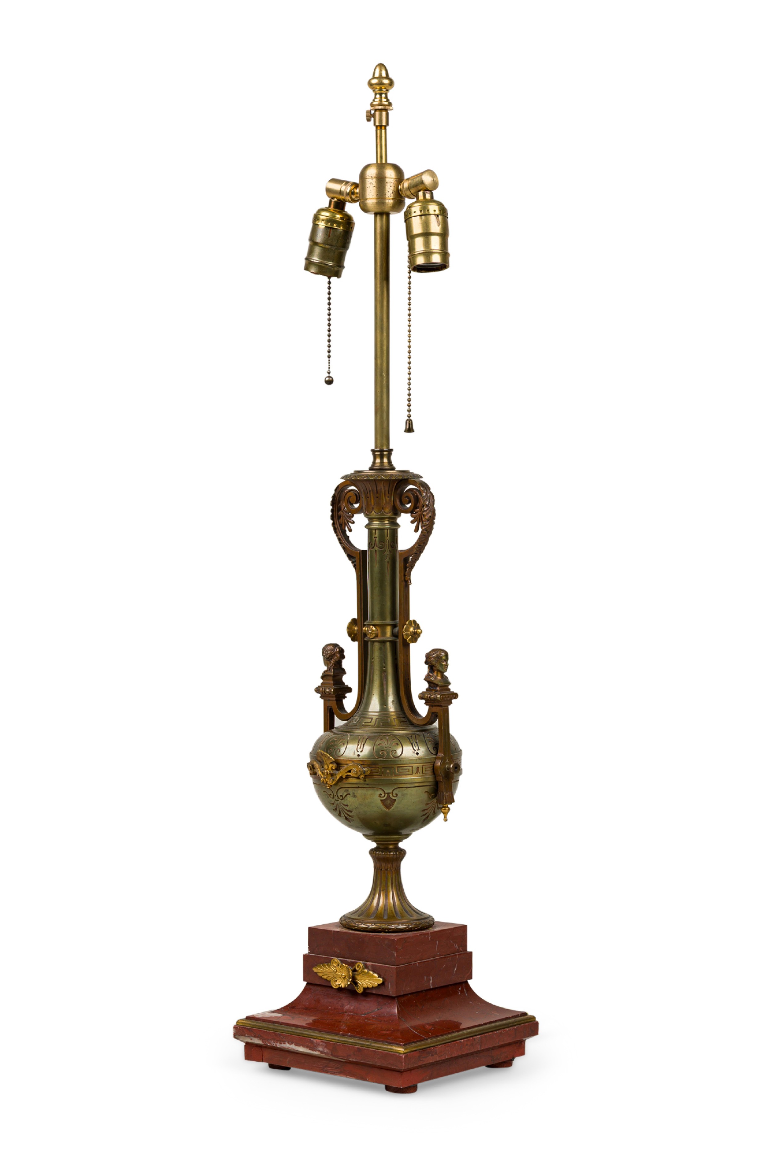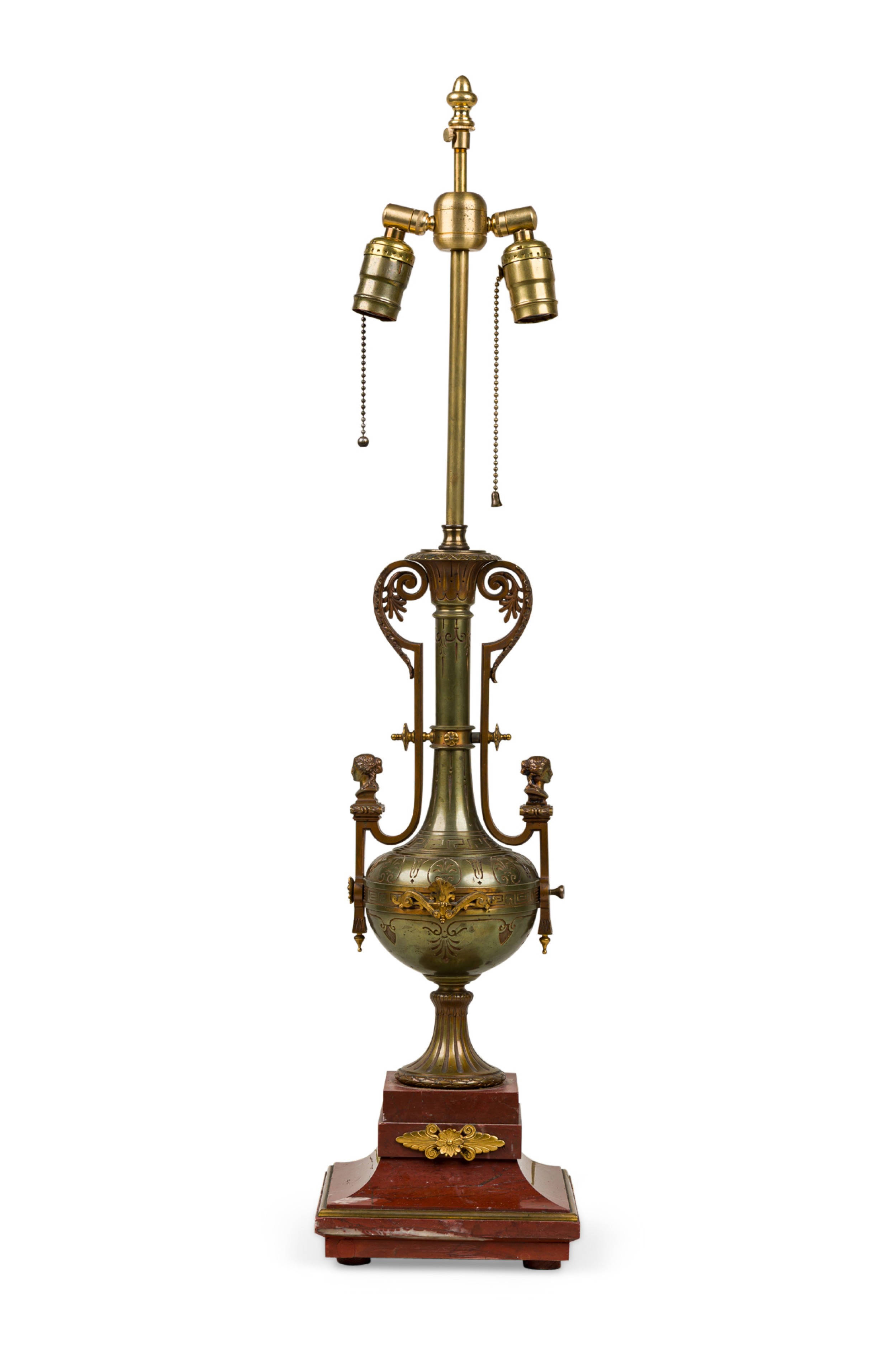 Ferdinand Barbedienne French Empire Style Bronze and Rosso Marble Lamp