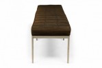 American Mid-Century rectangular museum bench with a brown fabric upholstered square channeled seat resting on a square chrome tube frame. (FLORENCE KNOLL FOR KNOLL INTERNATIONAL)