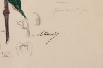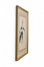 American Victorian (19th Century) watercolor, ink, and pencil botanical drawing depicting a Graptophyllum Earlii plant in green tones against a beige background, matted in a beveled parcel gilt painted wood frame. (Part of large set: 063653A, Companion pieces available individually: 063653-063701).
