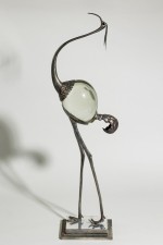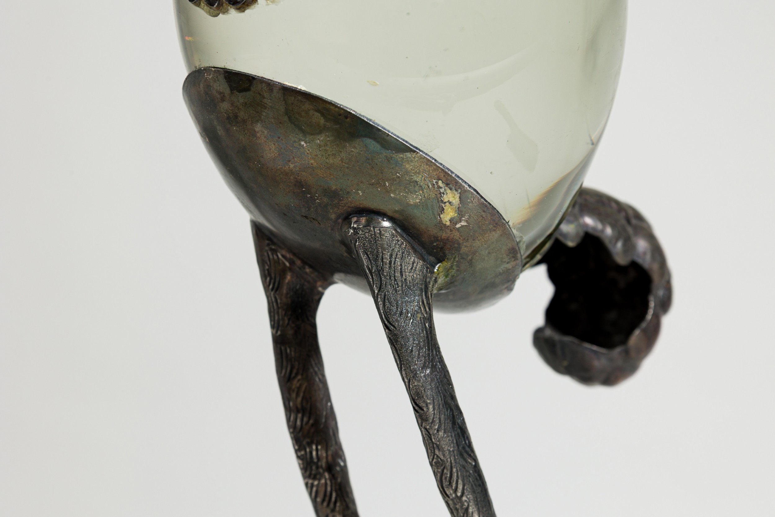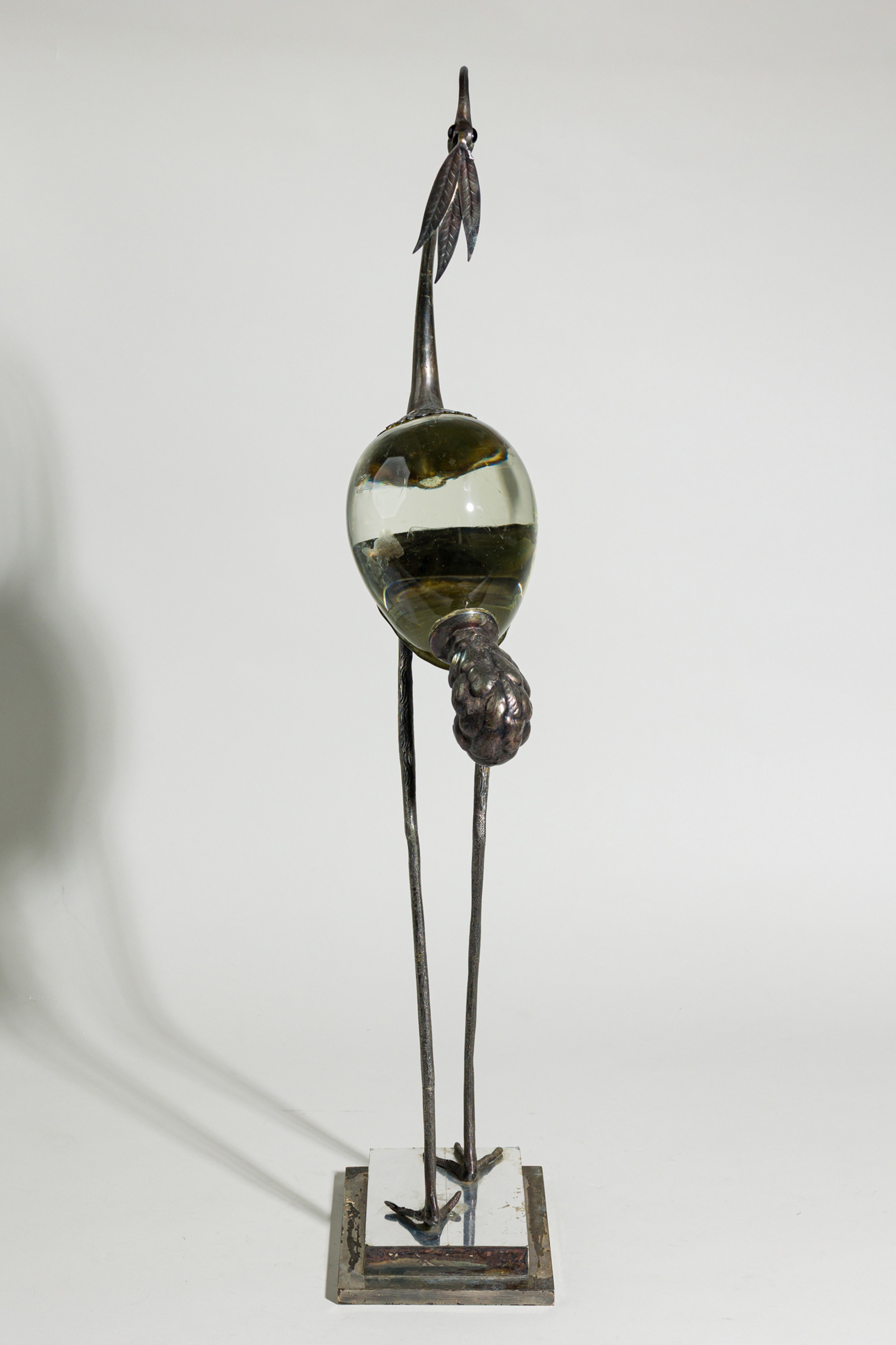 Franco Lafini Italian Mid-Century SIlver Plate and Crystal Crane